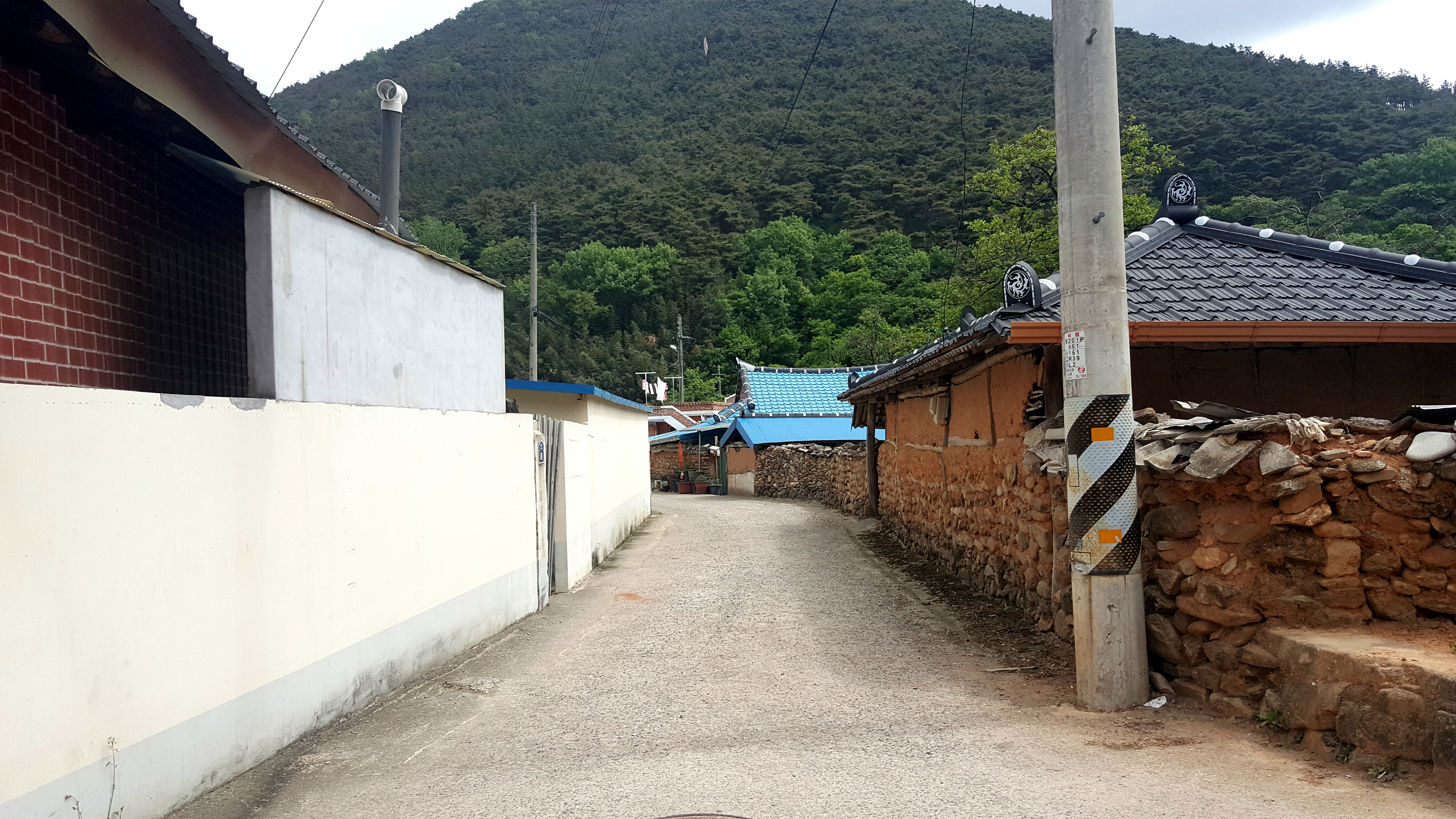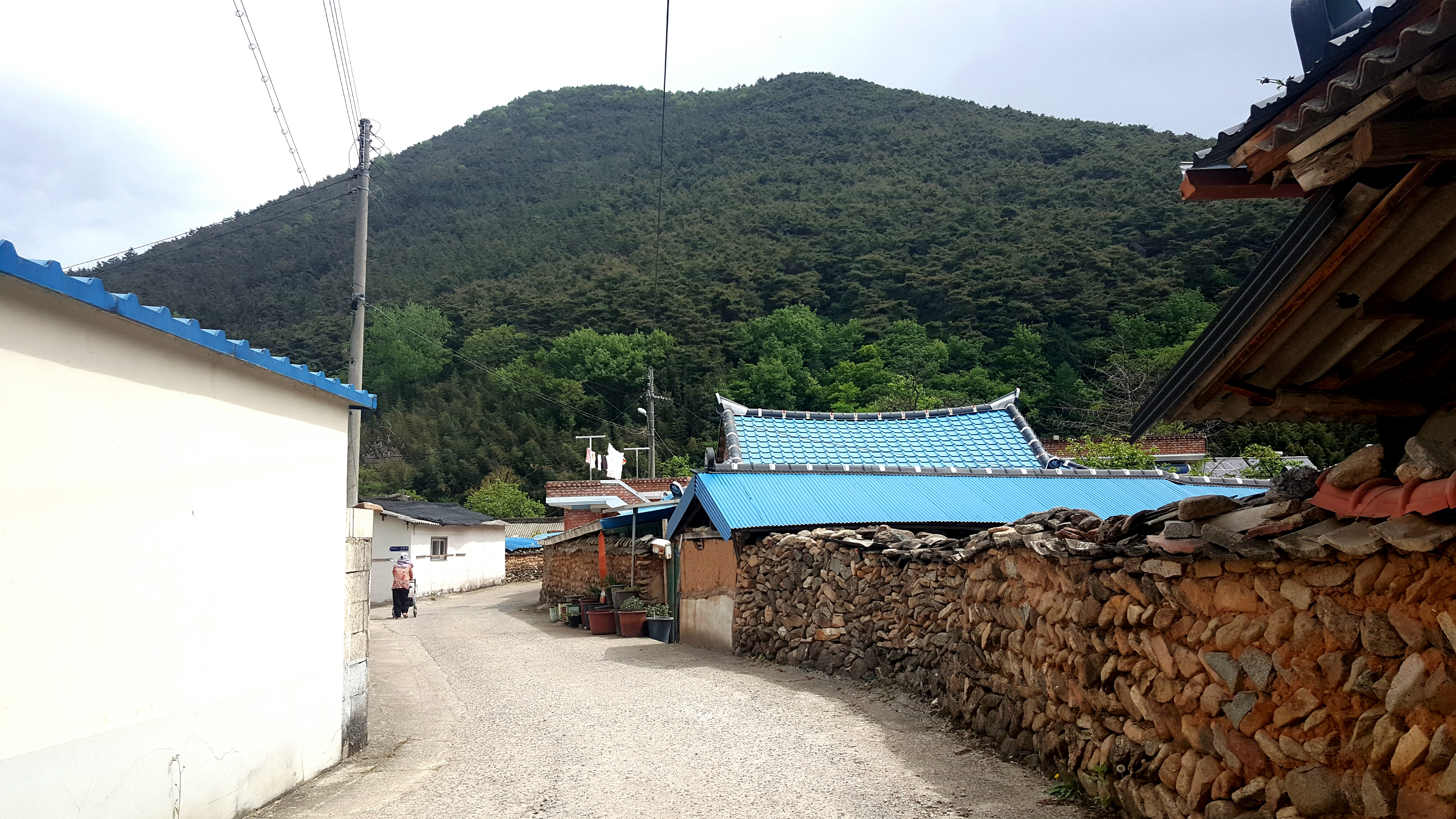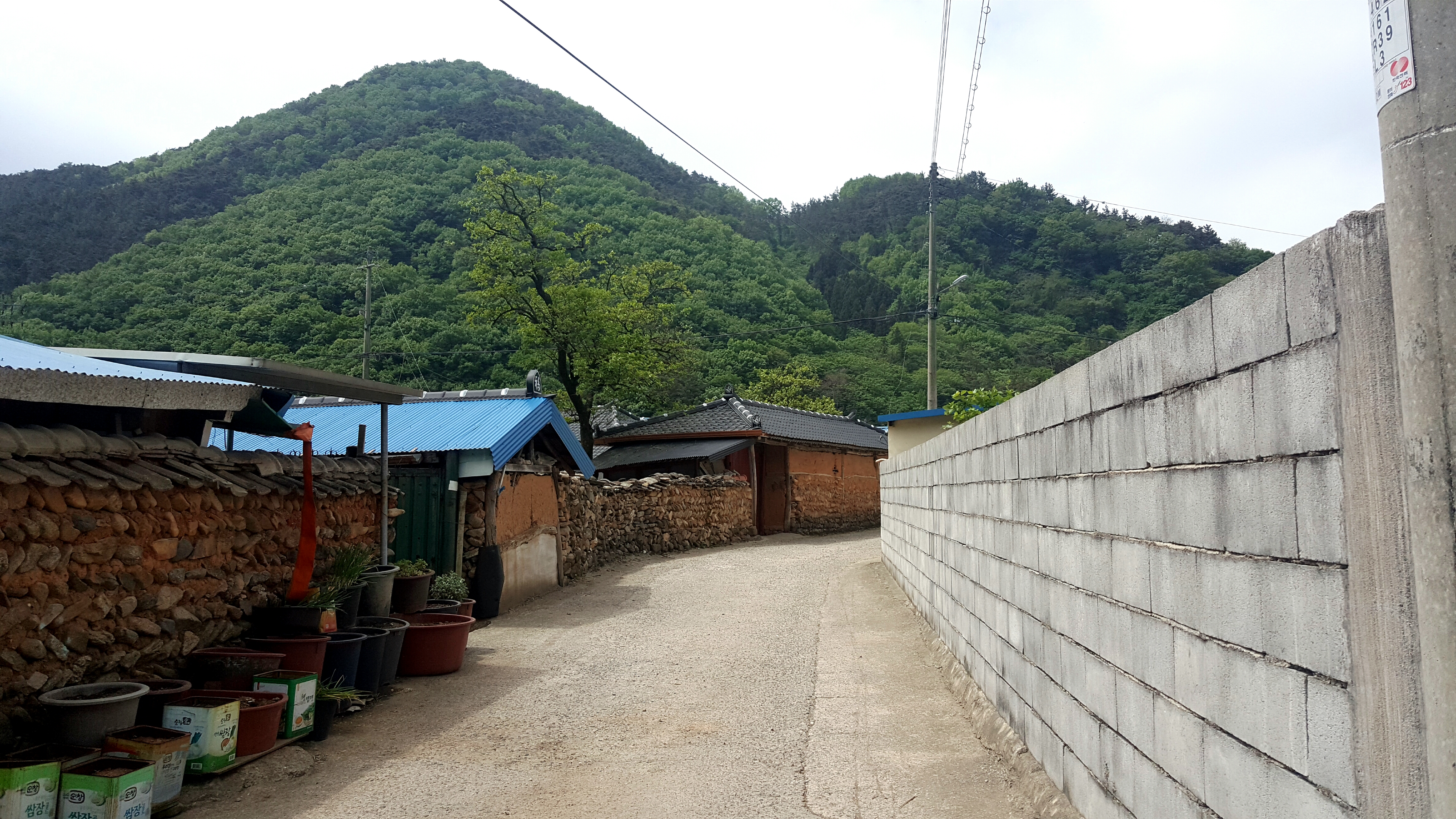 사진에서는 보이지 않는 왼편이 마을이며, 저짝 시내를 따라 죽 들어가면 불태산으로 기어들어간다.