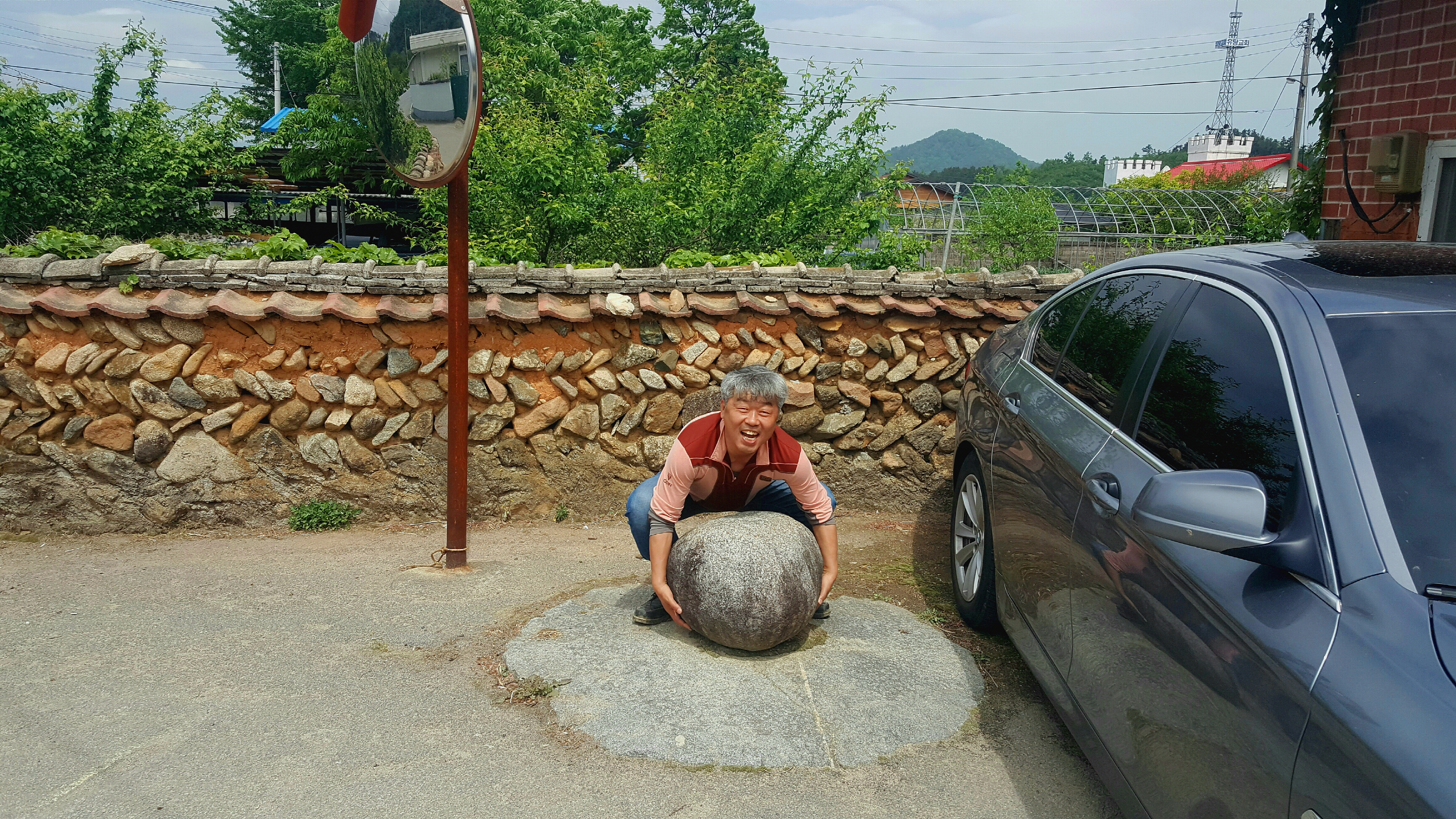 저건 현지에서는 들독, 다시 말해 드는 돌삐라고 하는 것으로, 서울 사투리로는 들돌이라 하는 요물이라, 장사들이 힘 자랑할 때 그 준거로 이용하는 돌삐다. 저걸 들어올리느냐 마느냐에 따라 장사가 정해지는 것이다.