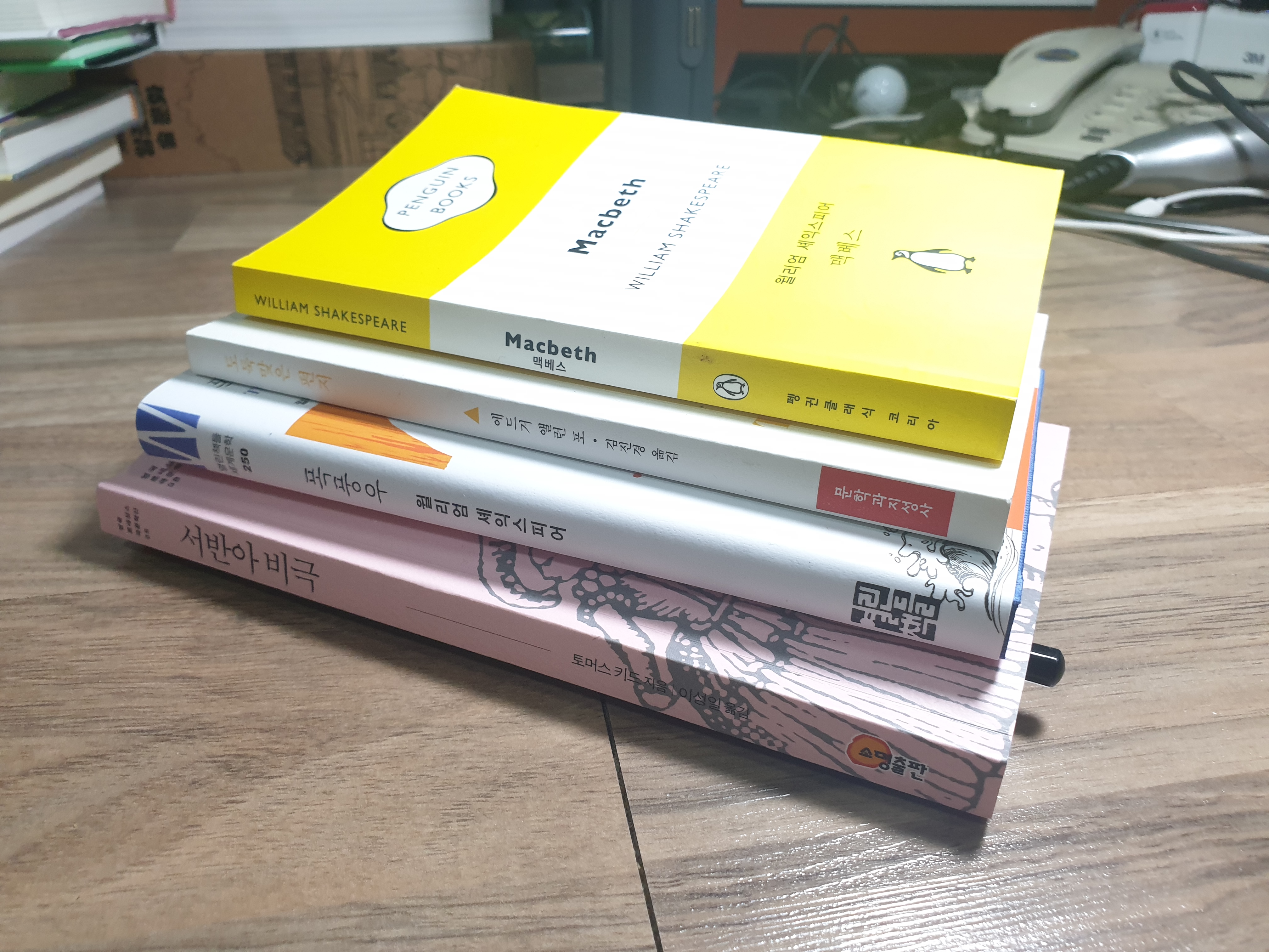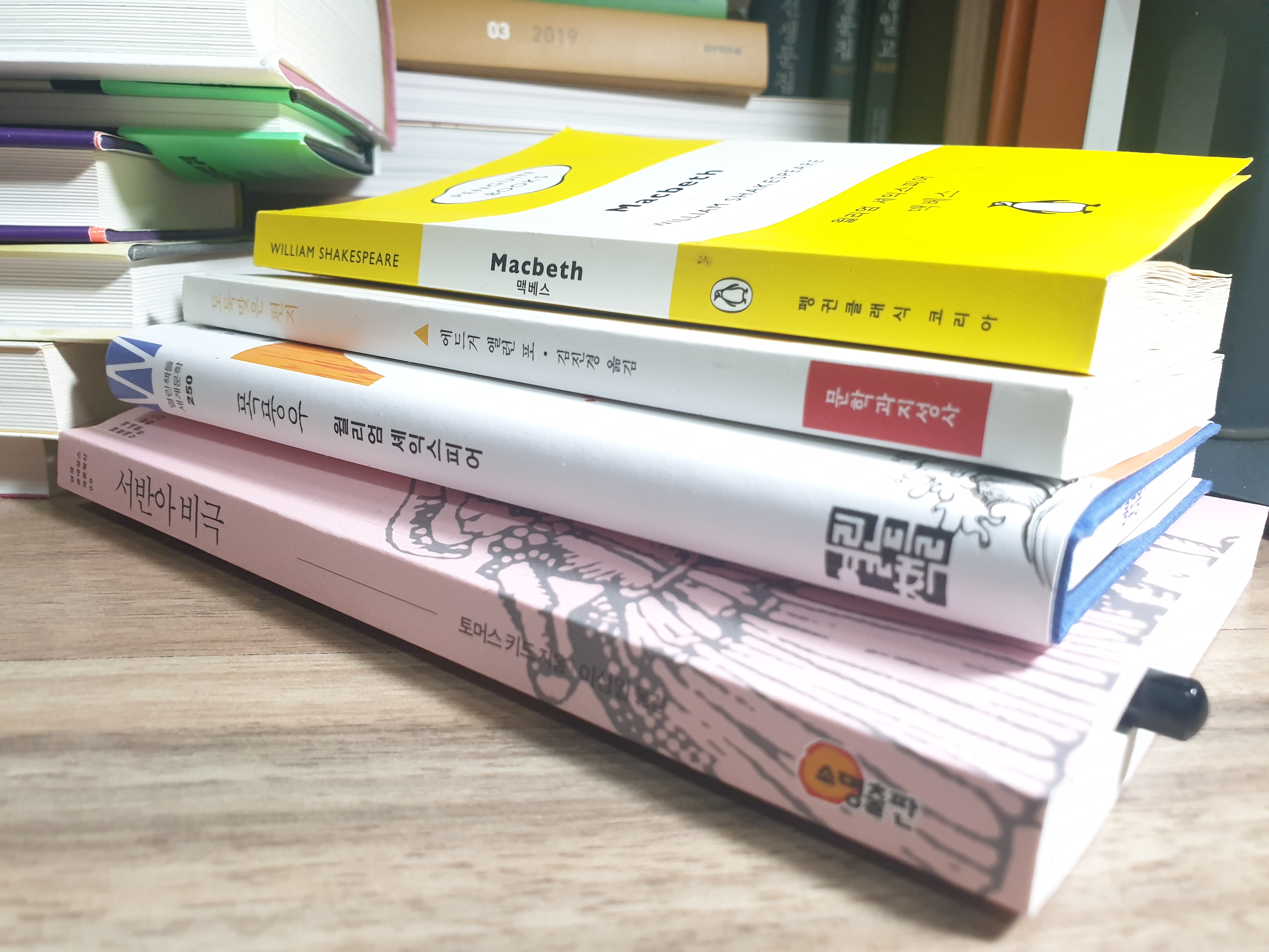 한때 영문학 언저리 맴돌았다고 긁어다 놨는데 셰익스피어가 《템피스트 the Tempest》와《맥베스 Macbeth》두 종, 나머지가 애드거 앨런 포 단편선《도둑맞은 편지 the Purloined Letter》, 그리고 셰익스피어보단 대략 열살 정도 위인 토머스 키드《서반아 비극 the Spanish tragedy》다. 이 중 키드는 앞서 잠깐 소개한 적 있다.
