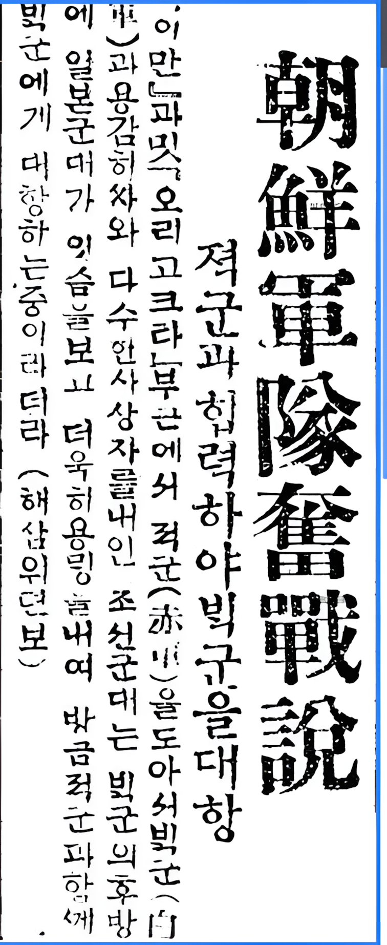 기사를 보면 "백군의 후방에 일본군대가 있음을 보고 더욱히 용맹을 내여 방금 적군과 함께 백군에게 대항하는 중이라 한다"