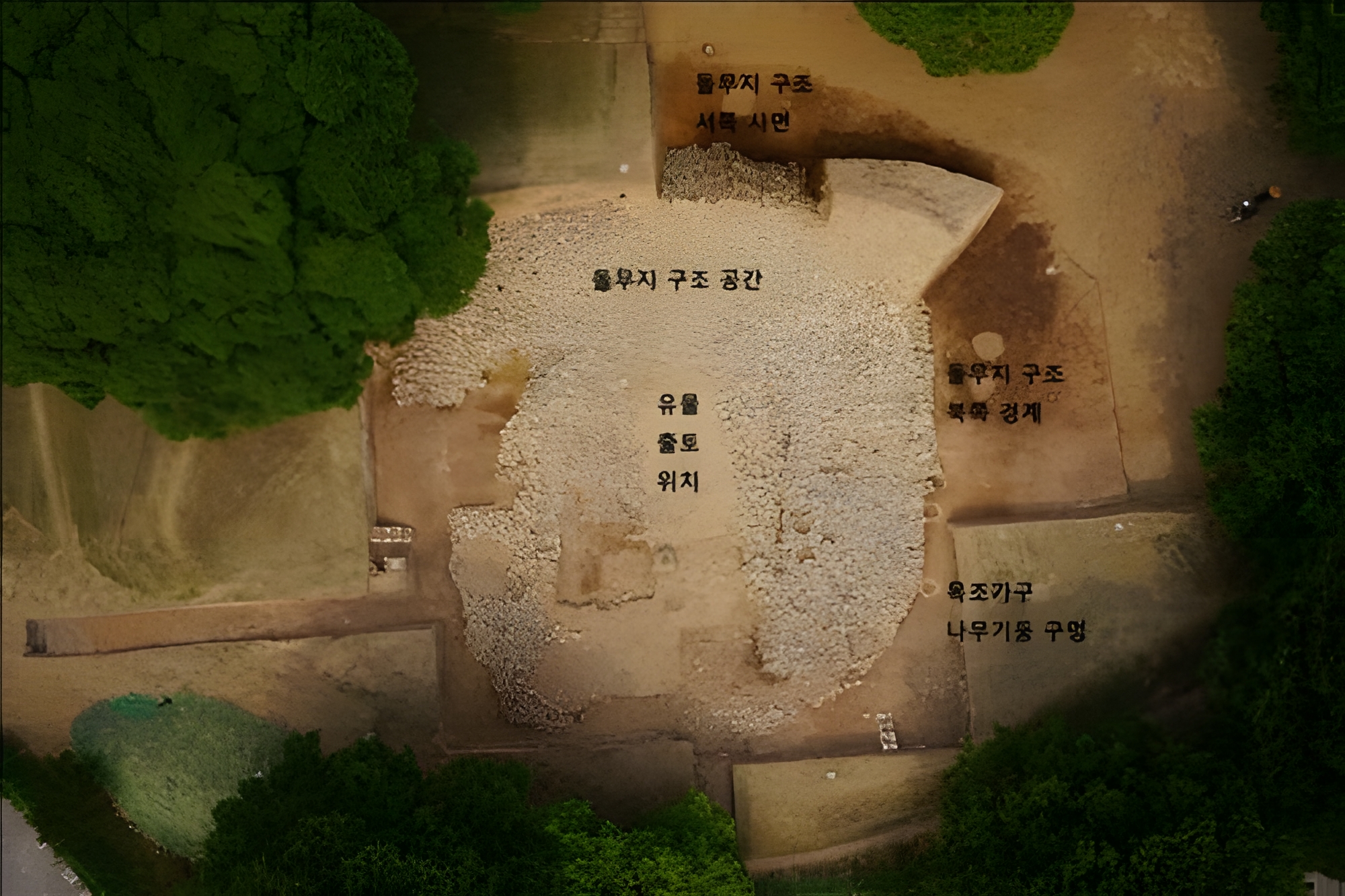 그 중 하나로 현재의 모습처럼 우람한 모습으로 거대한 봉토가 완성되기 전, 이곳에는 빈전殯殿으로 볼 수 있는 거대한 목조건축물이 있었음을 주목했다.