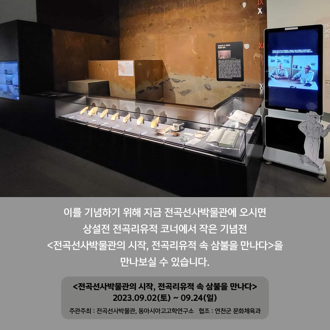 이를 기념하기 위해 지금 전곡선사박물관에 오시면 상설전 전곡리유적 코너에서 작은 기념전 <전곡선사박물관의 시작, 전곡리유적 속 삼불을 만나다>을 보실 수 있습니다.🙋♂️🙋♀️