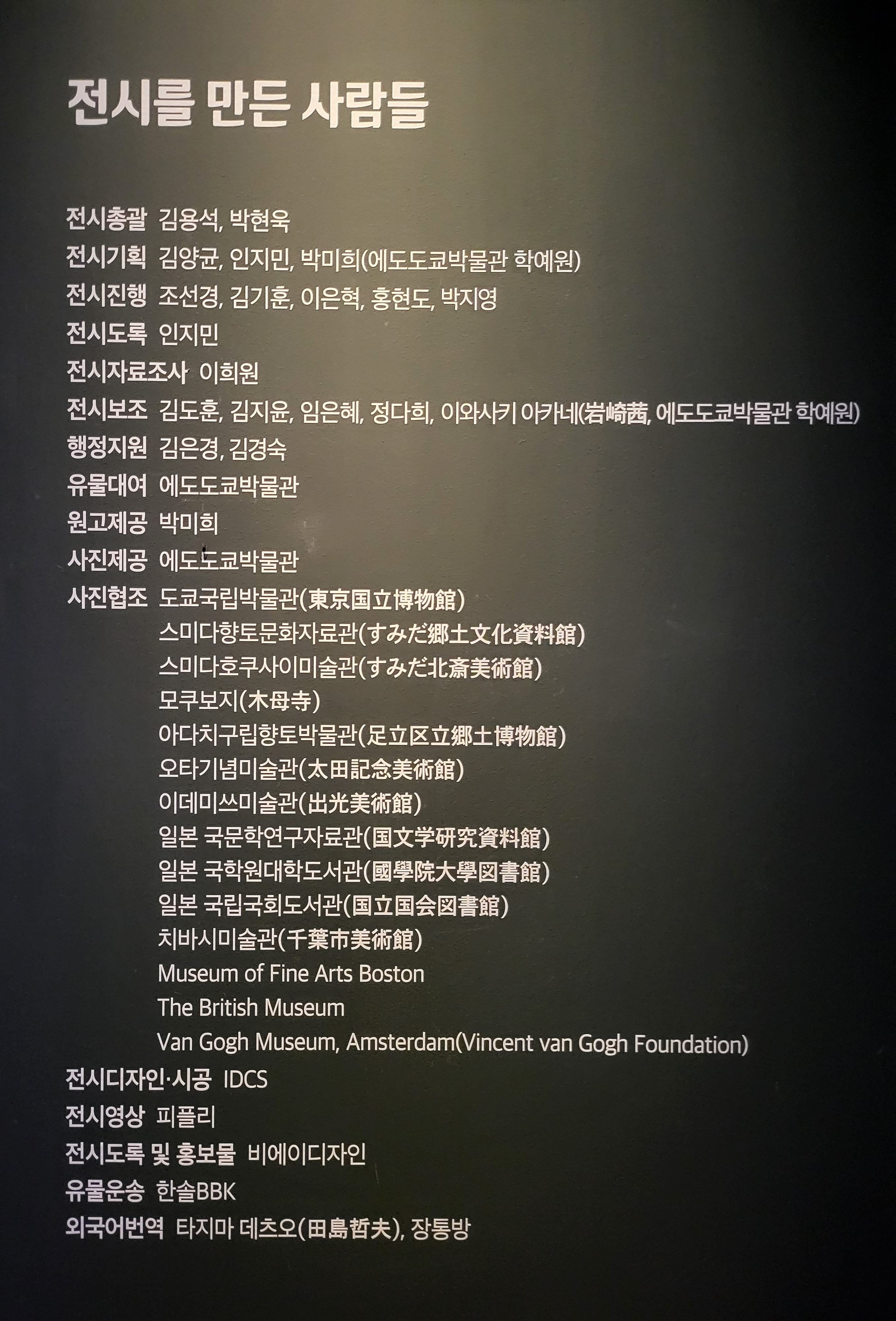 참고로 저런 명단에서 전시총괄 같은 이는 허당이다. 물론 이 전시를 승인하고 감독하며, 또한 그에 대한 모든 무한책임을 지는 막중한 자리이기는 하지만, 실제로 한 일은 암것도 없다!!!
