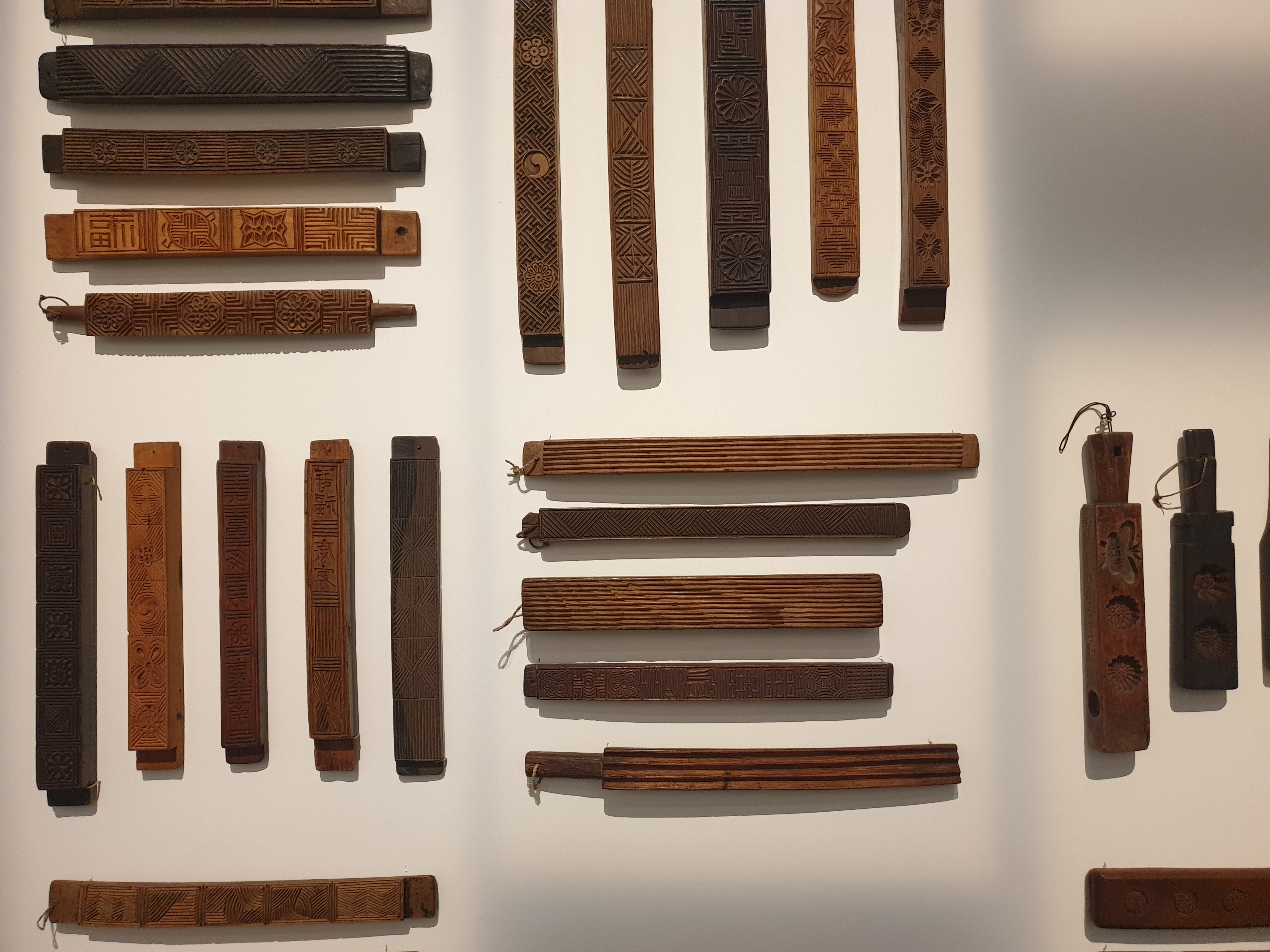 떡판 다식판도 같은 원리를 적용했다는데 기존 이런 전시가 문양이 잘 보이지 않는 점을 개선하는데 주력했단다.