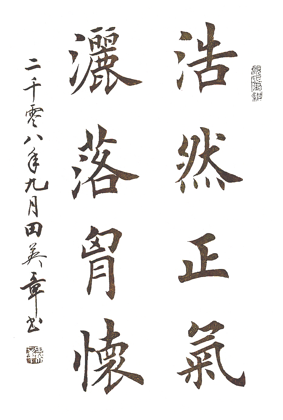 며칠 전 청나라 요맹기 해서체를 소개했거니와, 전영장은 현존 인물로서 당나라 구양순체歐陽詢體를 가장 잘 익히고 재현한 사람으로 손꼽힌다.