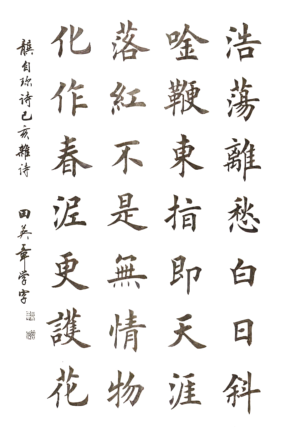 며칠 전 청나라 요맹기 해서체를 소개했거니와, 전영장은 현존 인물로서 당나라 구양순체歐陽詢體를 가장 잘 익히고 재현한 사람으로 손꼽힌다.