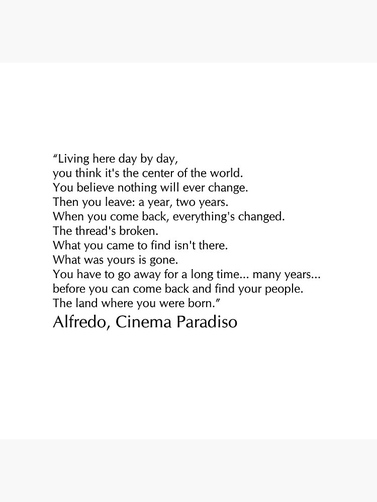 Get out of here! Go back to Rome. You're young and the world is yours. I'm old. I don't want to hear you talk anymore. I want to hear others talking about you. Don't come back. Don't think about us. Don't look back. Don't write. Don't give in to nostalgia. Forget us all. If you do and you come back, don't come see me. I won't let you in my house. Understand?