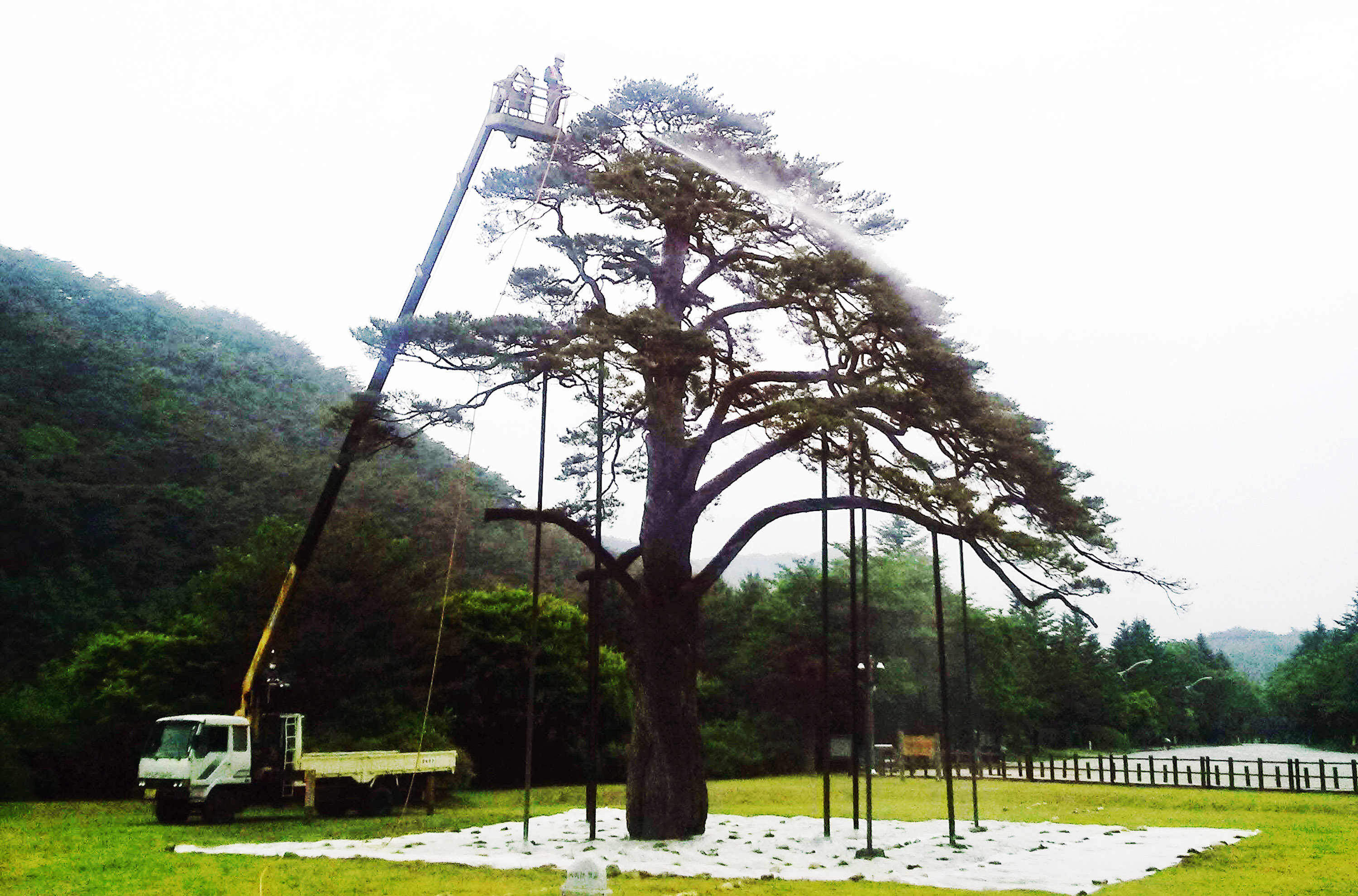 저 정이품송을 일러 흔히 ‘원추형 아름다운 자태’라 하지만, 지나치게 많은 나이, 그에 따른 생태 환경 변화 혹은 각종 자연현상은 언제나 그것을 고사 위기로 몰아간다.