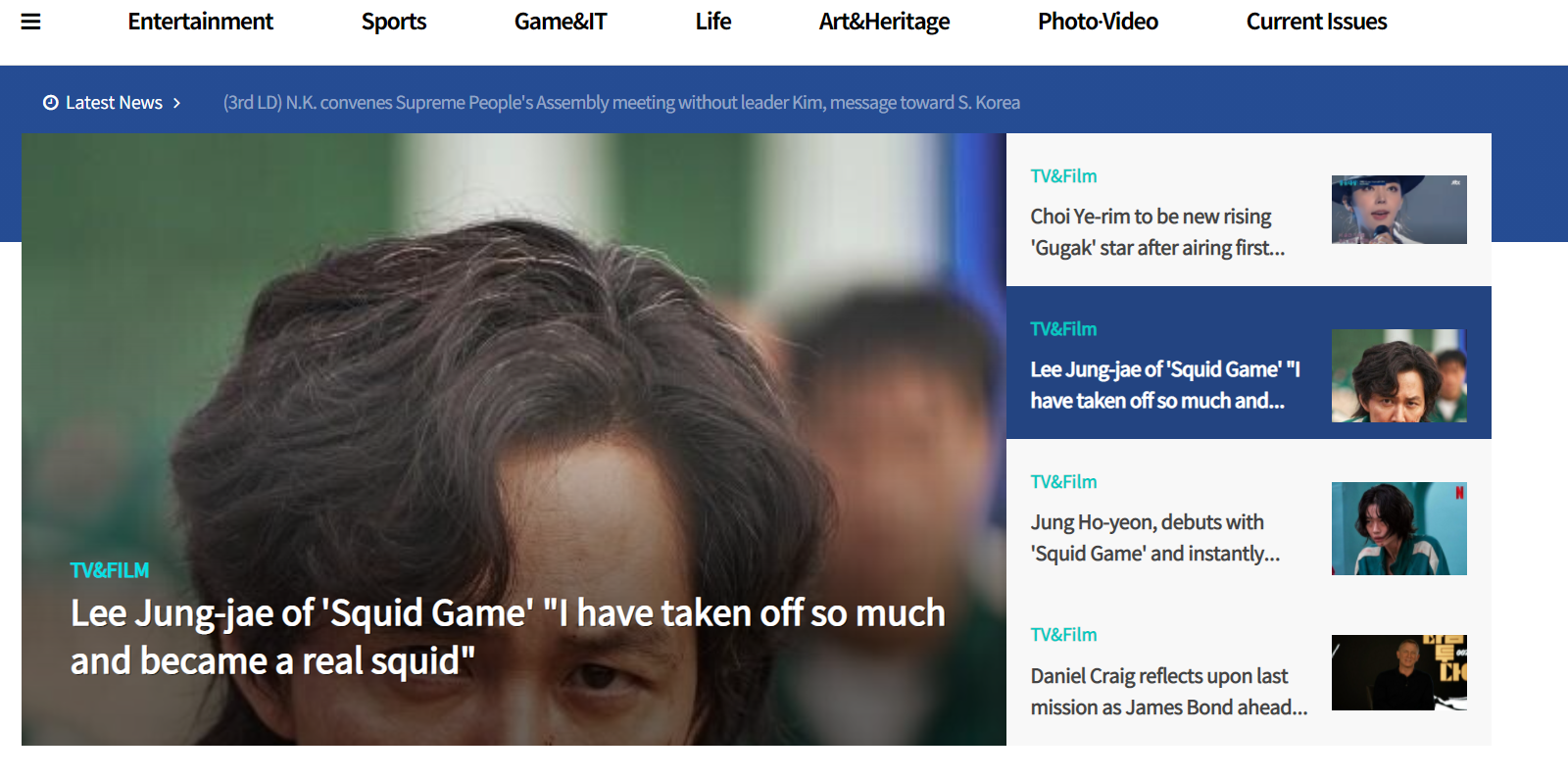 오늘은 주인공 이정재가 나섰으니, 저 친구 말을 뺄 수가 없는 메인이다. 더불어 이번 드라마 성공으로 일약 스타덤에 오른 정호연 이라는 친구 소식도 다루었고, 직접 상품이라 할 수는 없지만, 이 드라마에 출연한 박해수가 결혼 2년만에 득남했다는 소식도 다루었으니, 평소 같으면 아 그런갑다 하겠지만, 시국이 시국이라 오징어 어장에 걸린 그를 어찌 놓칠 수 있겠는가?