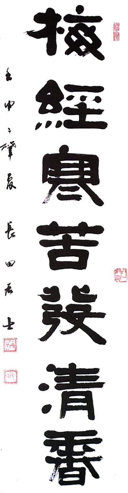 평보는 69년 대통령상 수상 이후 소전의 영향에서 서서히 벗어나 자기의 체를 정립해나간 반면(앞 사진), 장전은 소전체에서 한 발자국도 벗어나지 않고 그를 끝까지 묵수한다(아래 사진).