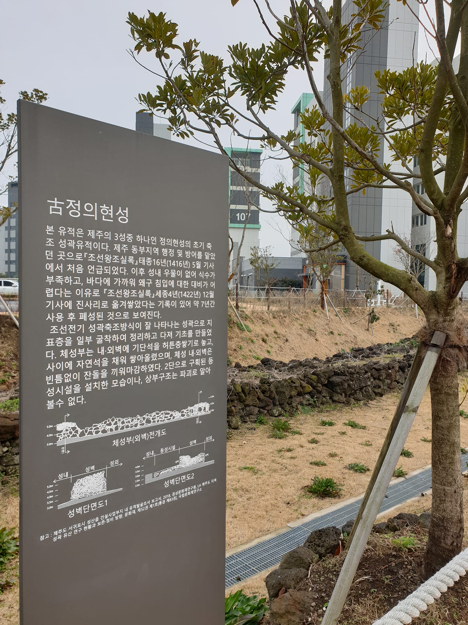 개중 정의현 중심지 읍성은 본래 성산 일출봉 근처에 두었다. 하지만 너무 치우쳐 백성들이 불편해하고, 또 왜구라든지 뭐 여러 가지 사정이 있어 7년 만에 자리를 옮기니 지금의 성읍민속마을이 바로 정의현 읍성 자리다.