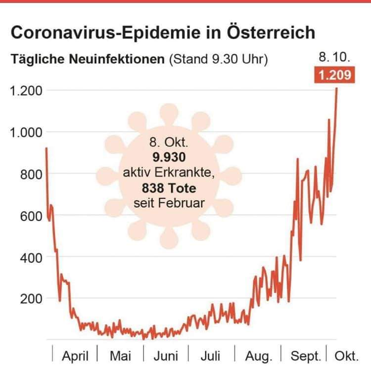 오스트리아도 이곳 한국대사관 공보관 윤종석 선생 전언으로는 어제 하루 확진자가 1천209명으로 역시 최고치였단다. 개중 180만 명 비엔나가 600명 정도로 절반을 차지한단다.