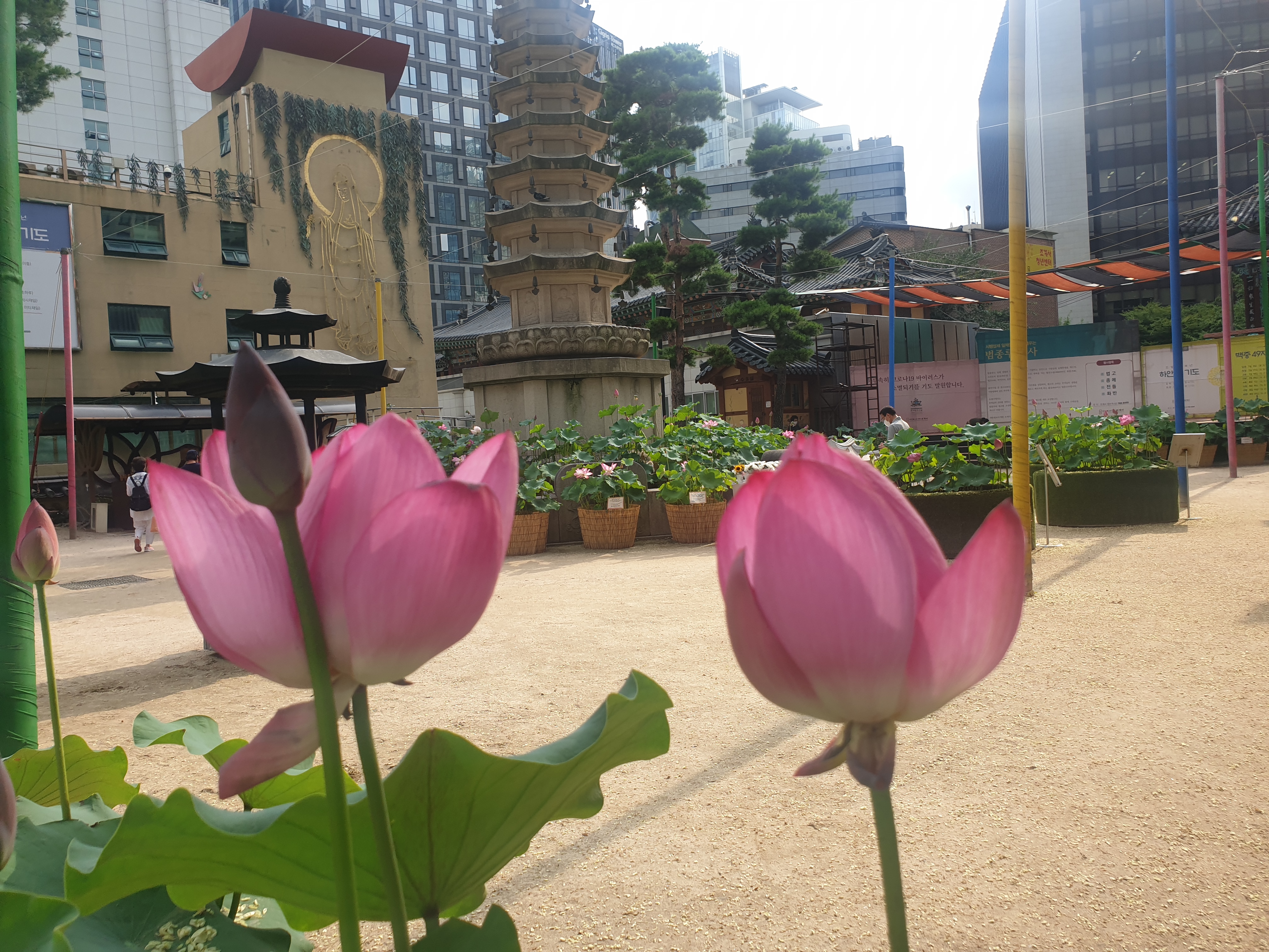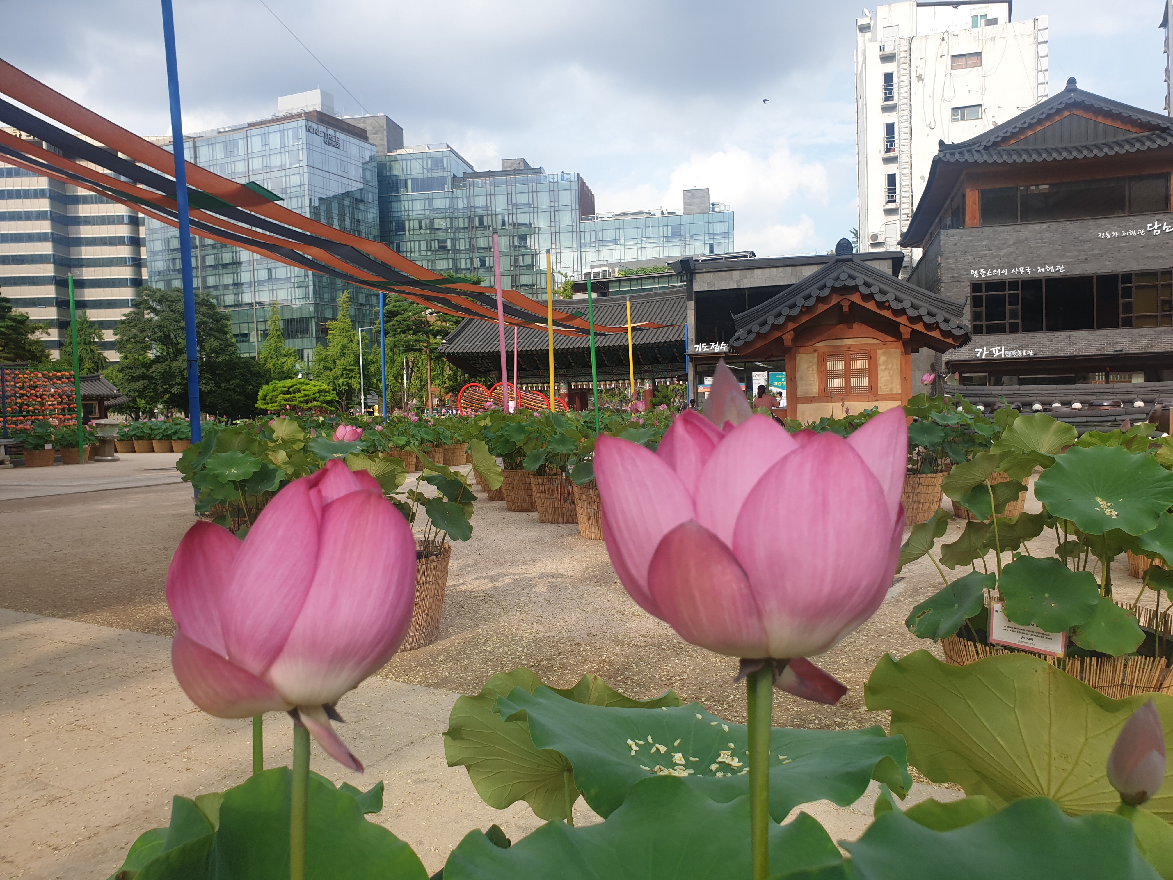 올핸 어찌하여 로터스다운 로터스플라워는 구경도 못하고 계우 수송동 공장 인근 조계사 마당 다라이에 꽂아둔 조경용 로터스플라워로 만족한다.