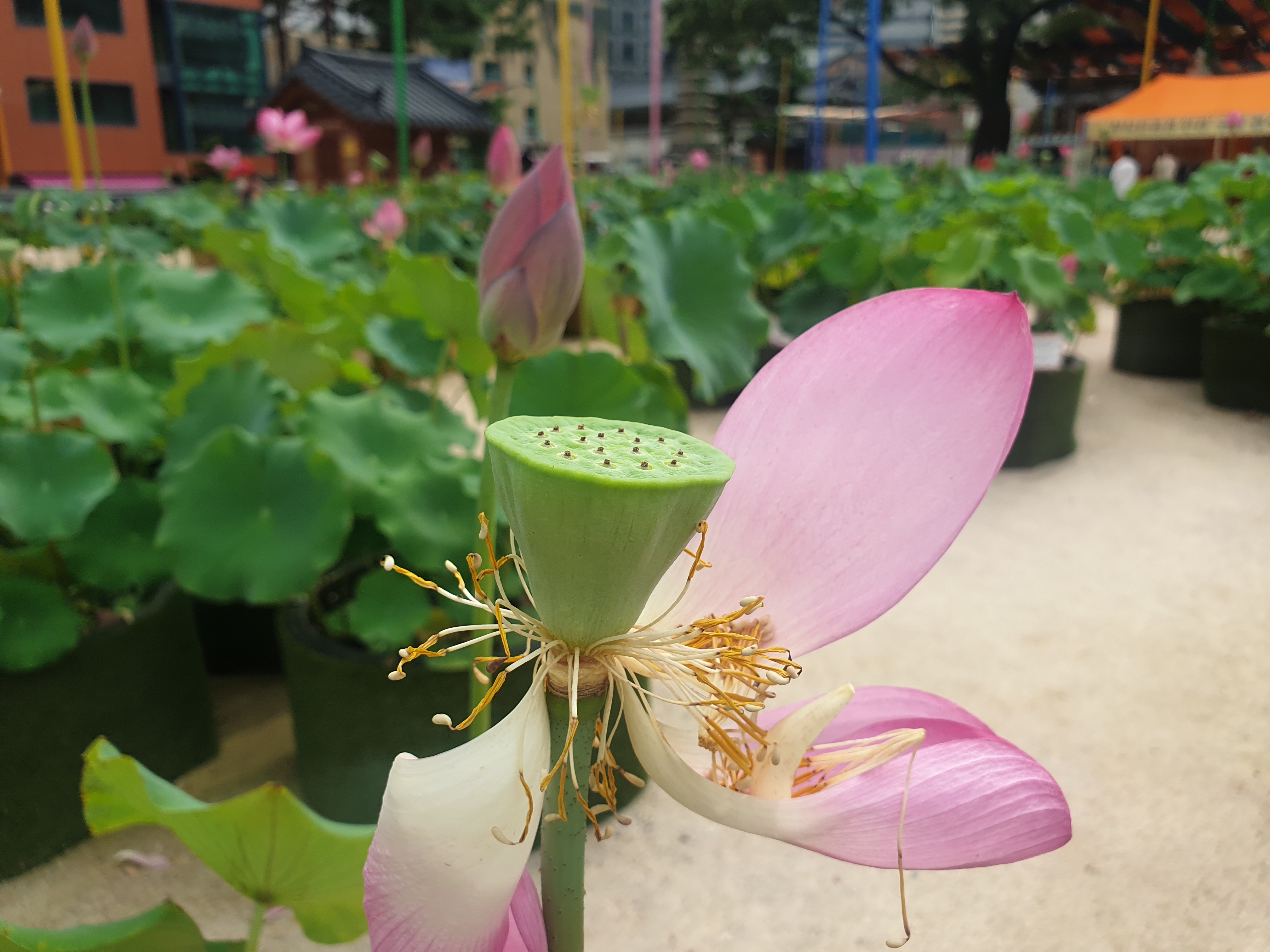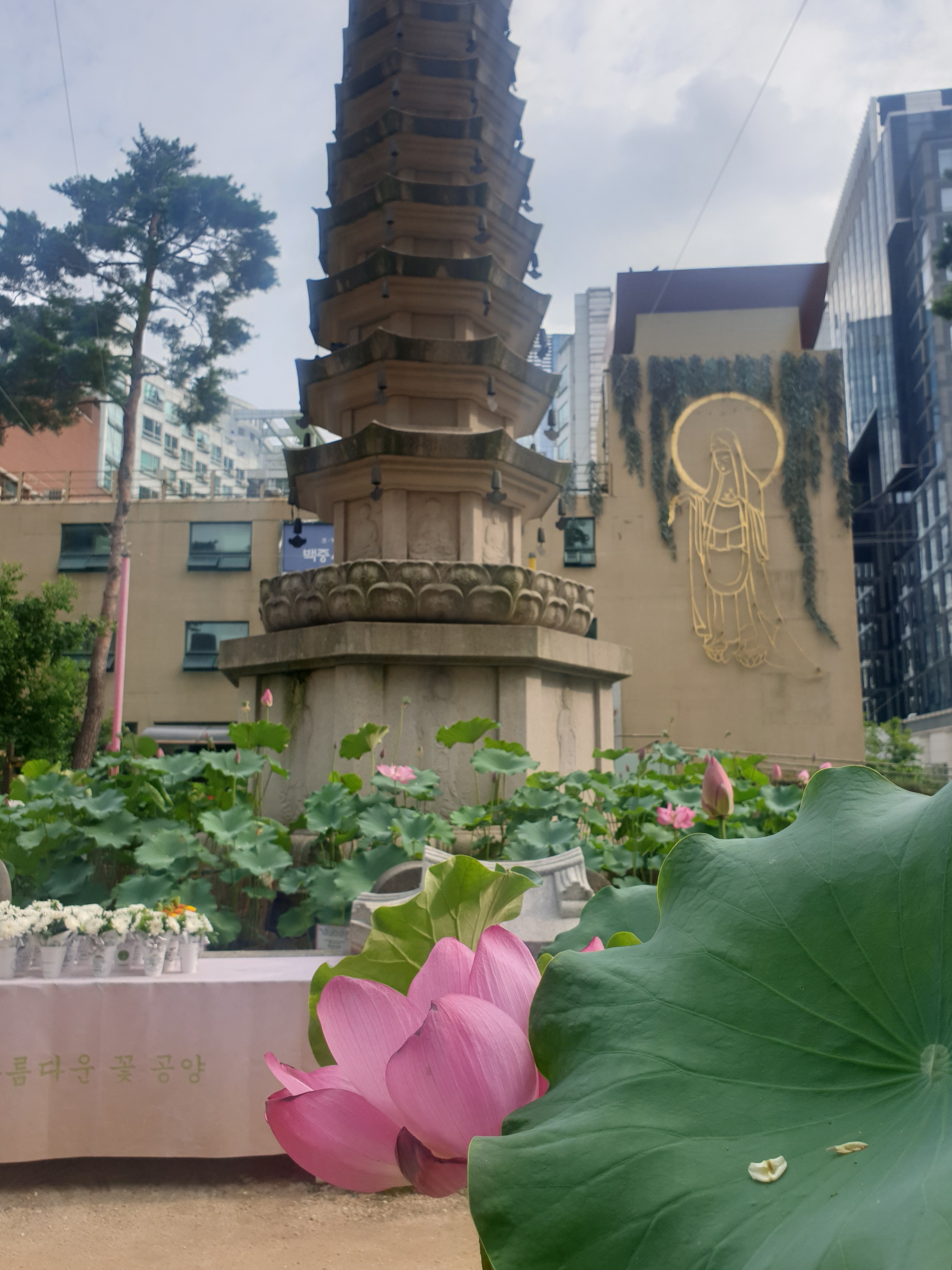 올핸 어찌하여 로터스다운 로터스플라워는 구경도 못하고 계우 수송동 공장 인근 조계사 마당 다라이에 꽂아둔 조경용 로터스플라워로 만족한다.