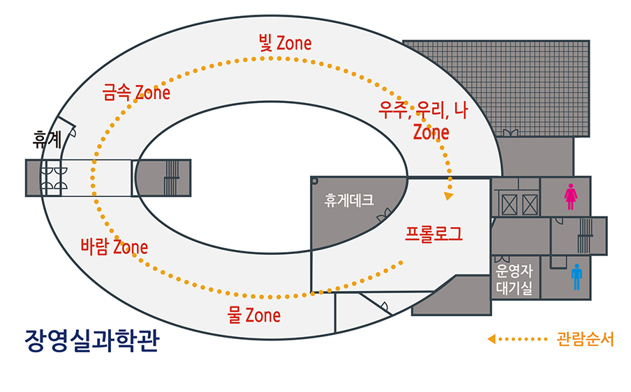 홍대용주제관-과학사전시관-과학체험관 으로 이어진다.