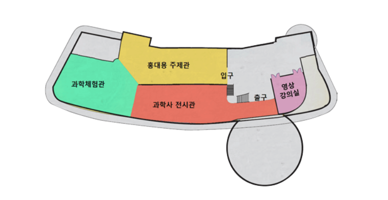 홍대용주제관-과학사전시관-과학체험관 세 부분으로 구성되어 있었다.