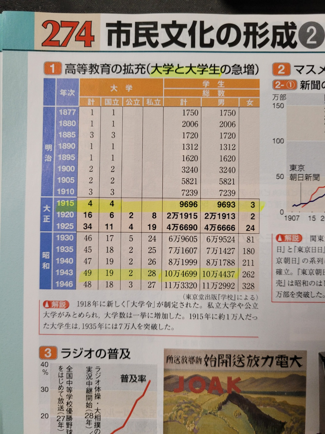대학령이 발효된 1919년 이후 일본에는 대학 수가 급증했다.