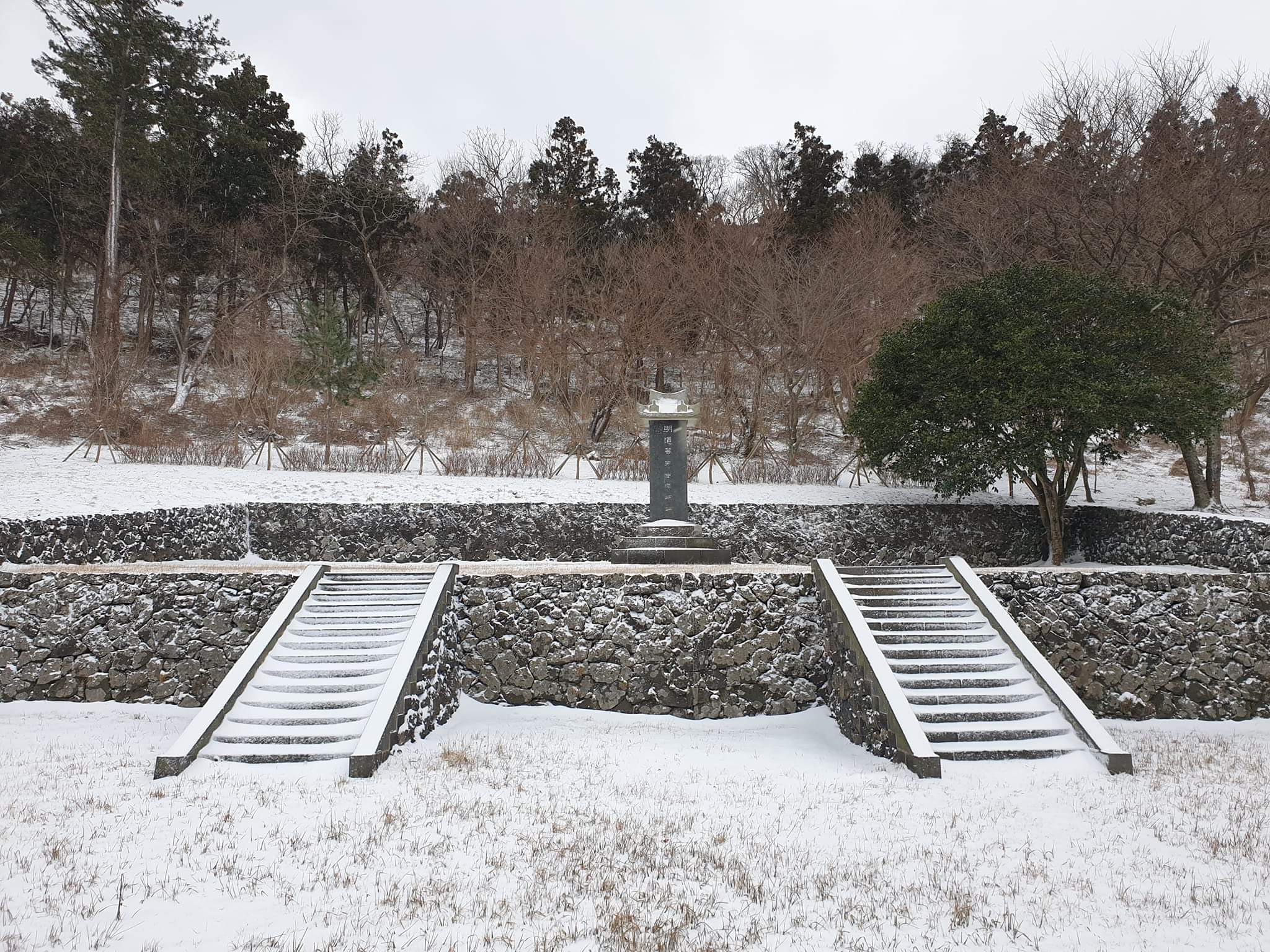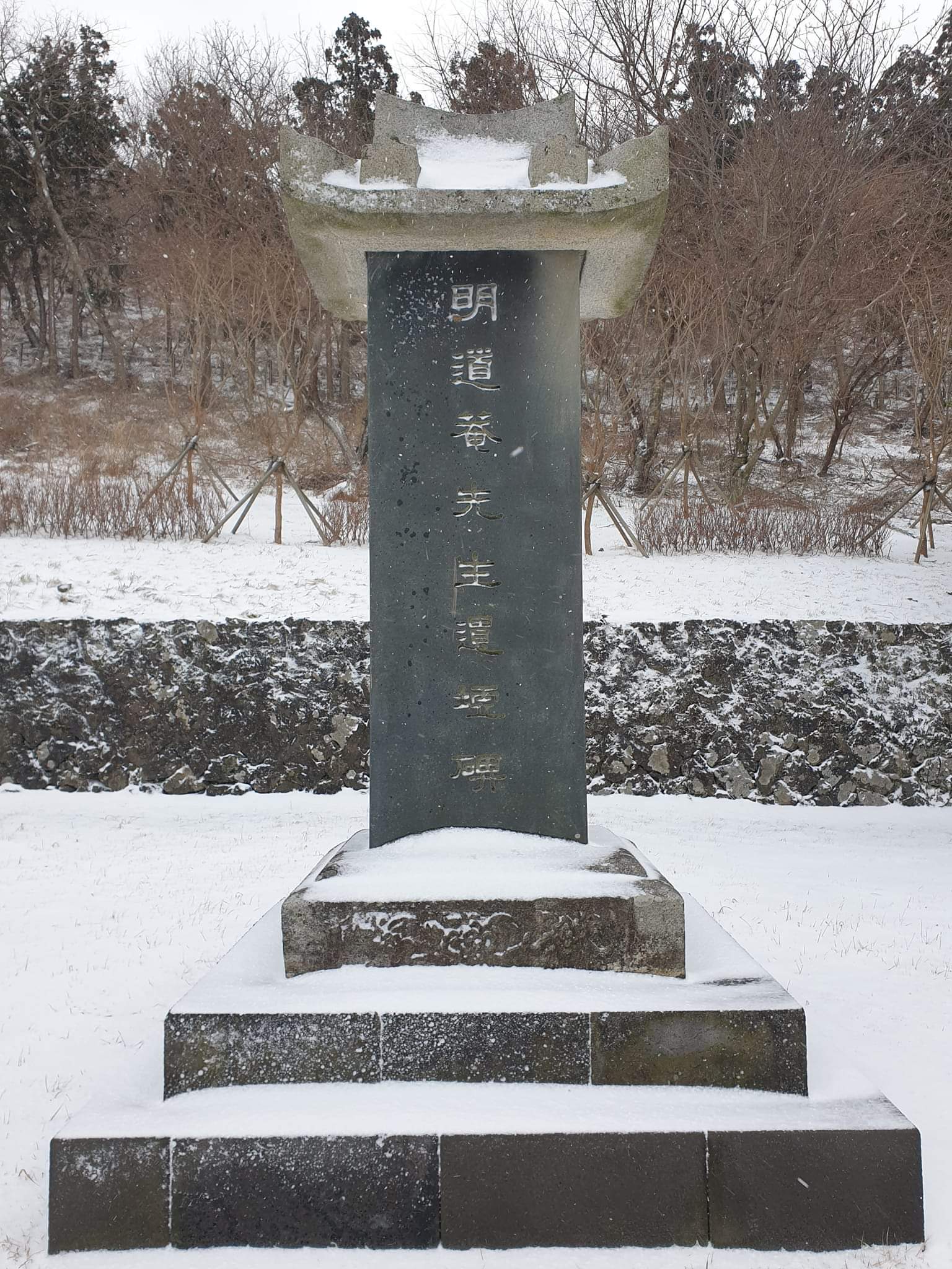 거기서 오른쪽으로 난 길을 따라 구불구불 올라가노라면 '明道岩마을'이란 빗돌을 만나고, 다시 거기서 오른쪽 샛길로 접어들어 약간 올라가면 제법 넓은 터전 위에 높직한 축대, 그 위에 비석 하나가 얹힌 광경을 만난다.
