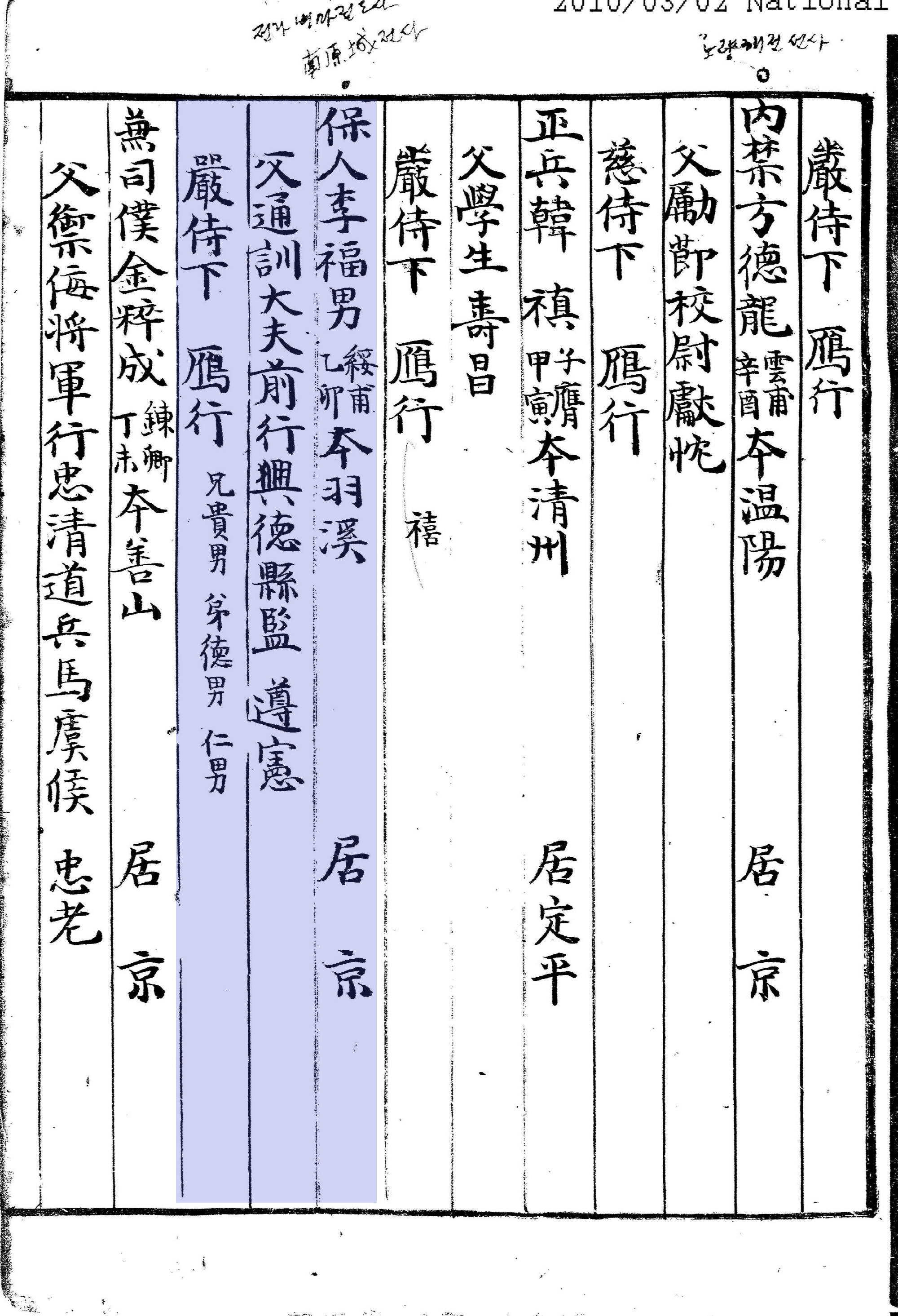 어쨌건 방목의 기록이 나오면, 위로 3대조까지, 그리고 외조까지 이름과 직역이 확인된다.