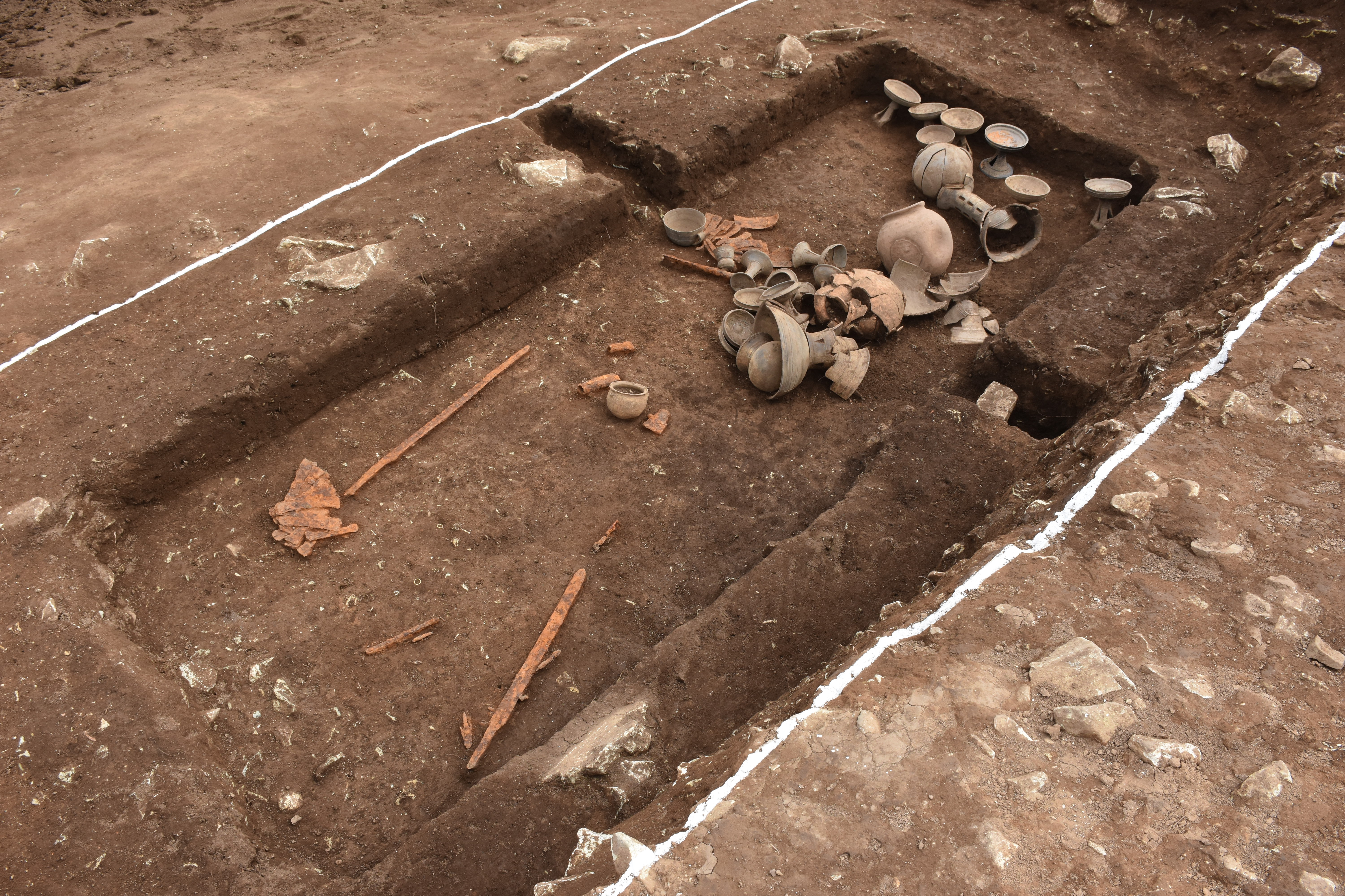 조사단은 "유구는 모두 도굴돼 토기, 철기 대부분이 도굴을 위해 뚫은 구멍인 도굴갱에서 출토됐다"며 "바닥 시상석(屍床石)에서는 고배(高杯·굽다리접시), 단경호(短頸壺·목짧은항아리), 장경호(長頸壺·목긴항아리), 철촉, 꺾쇠 등 일부만 남았다"고 설명했다.