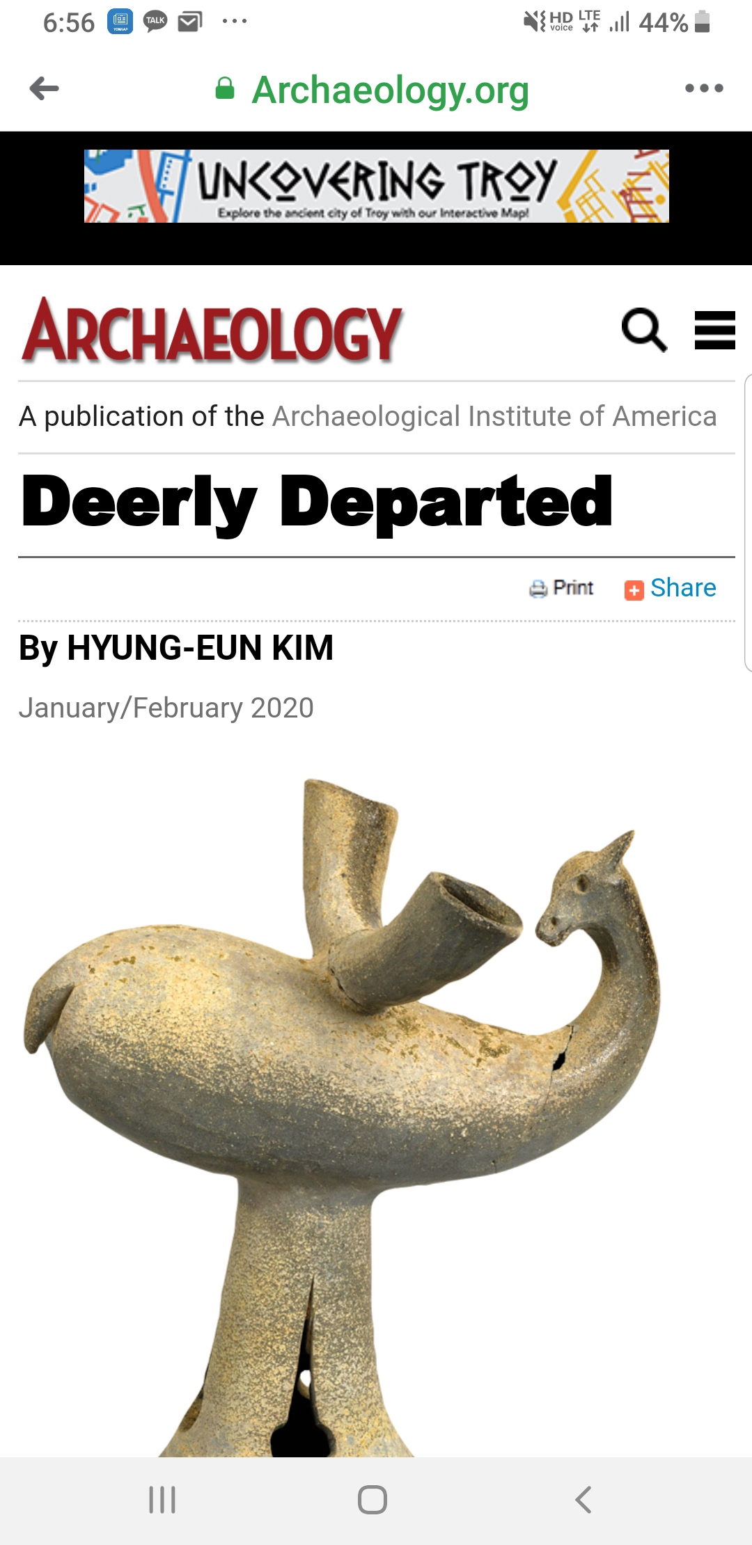 함안 말이산고분군 45호분에서 출토한 아라가야 시대 이른바 사슴모양 토기 발굴 소식이 아키올로지 매거진 Archaeology Magazine 에 소개되었다.