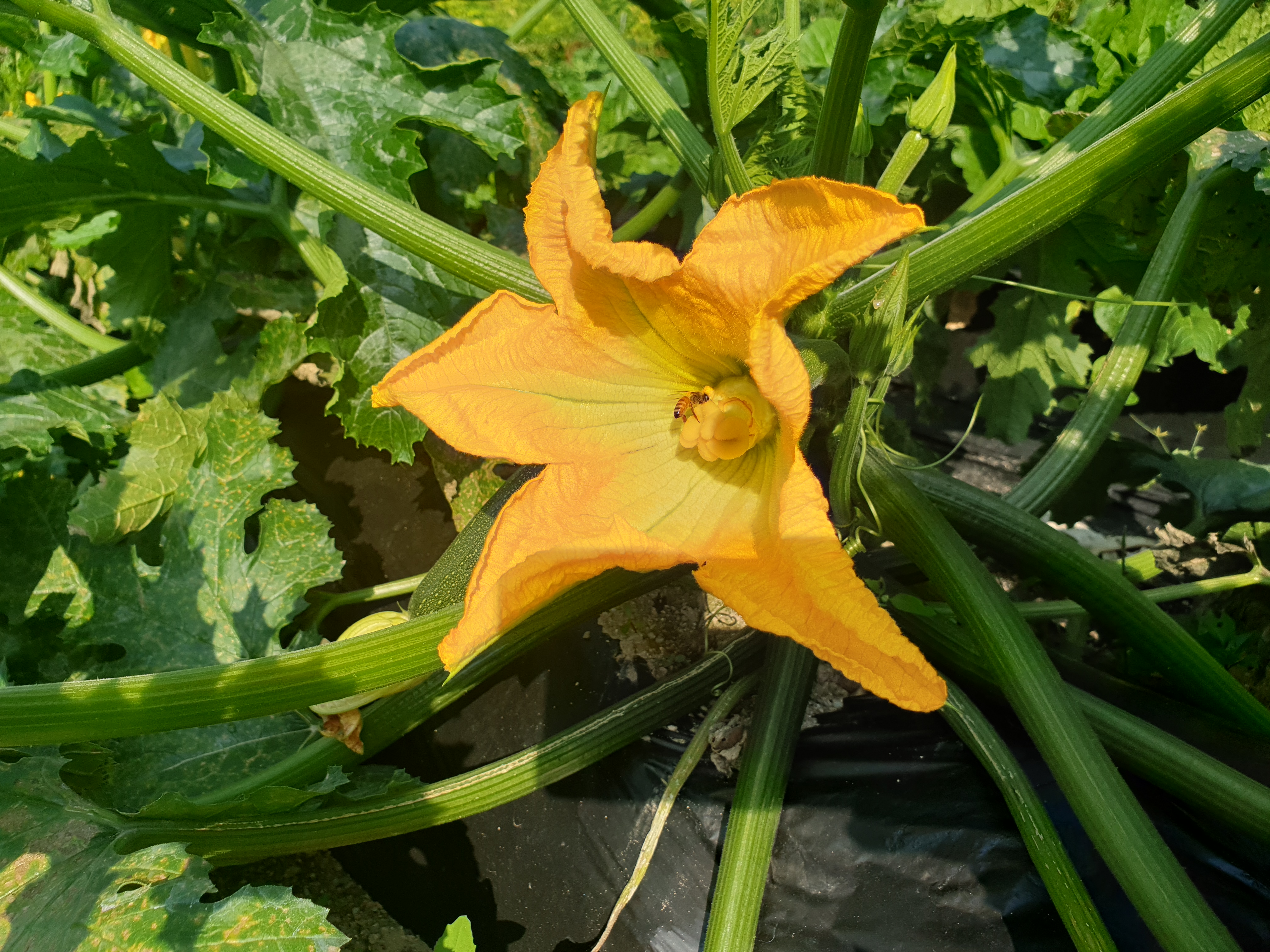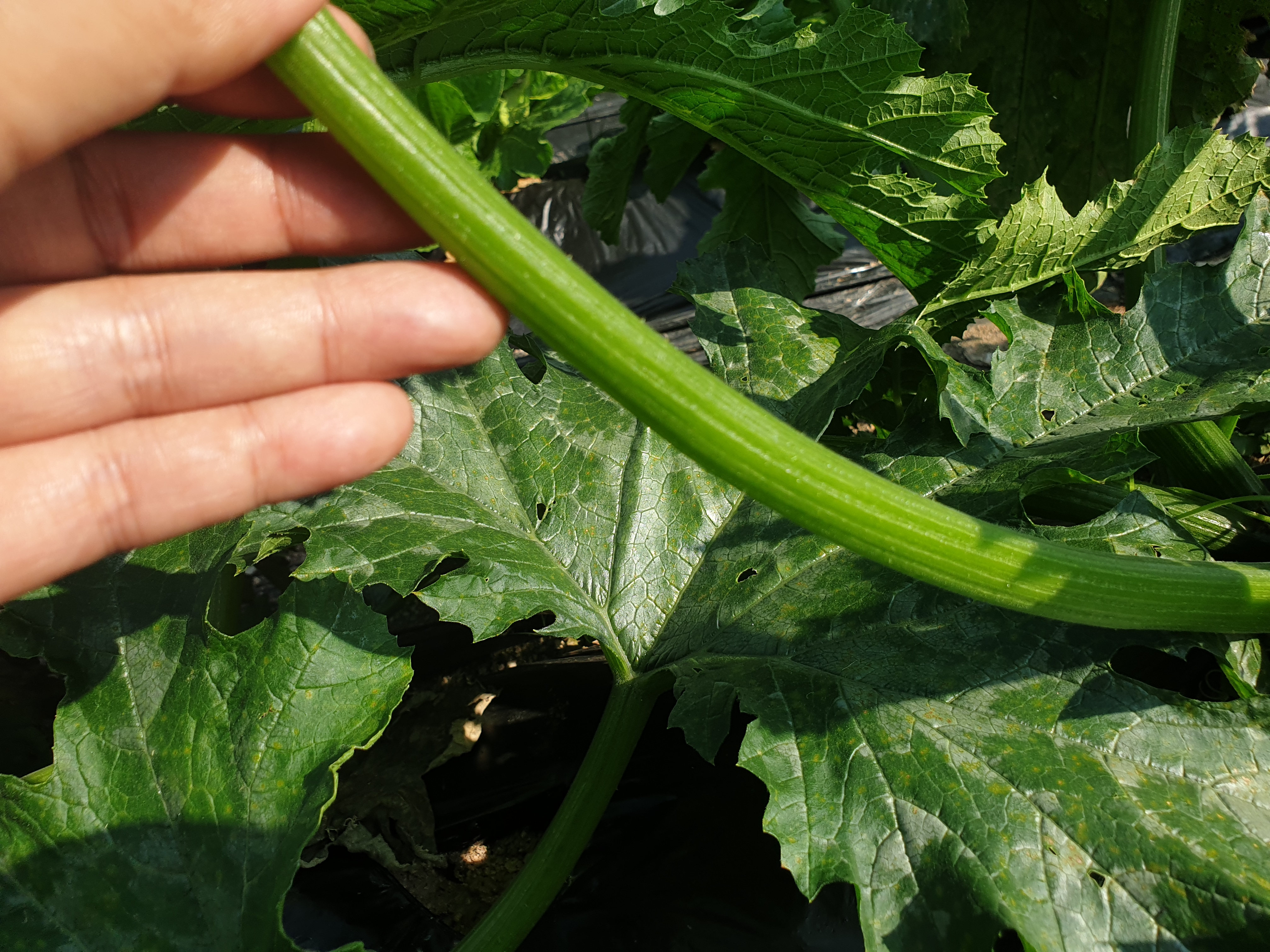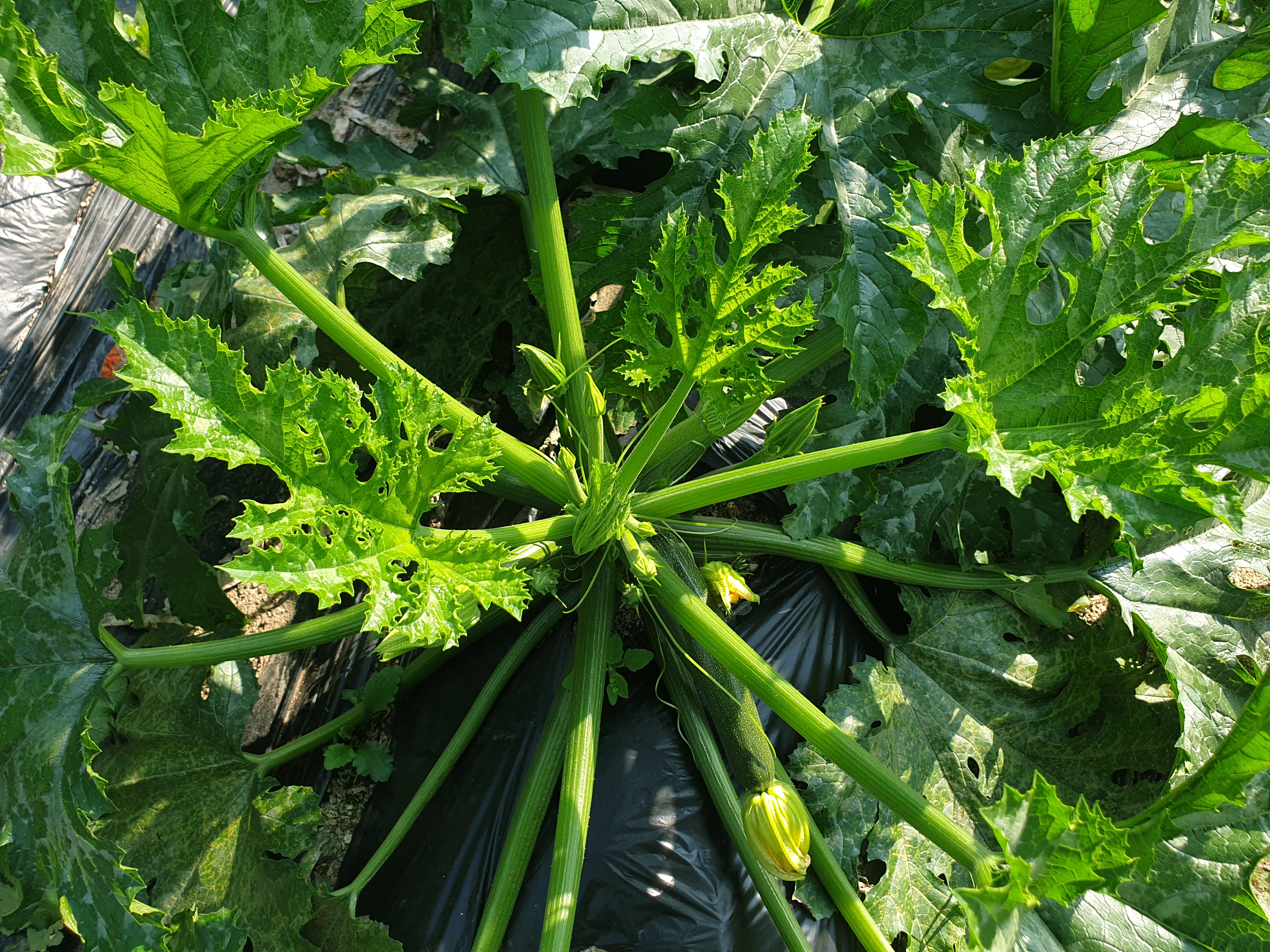 어째 이 놈 폼새가 심상찮아 그 자란 모습이 무슨 열대 우림을 보는 듯 하더니만 1미터 정도나 키가 큰단다. 종래 우리한테 익숙한 호박이 옆으로 그리고 다른 나무 같은 지물을 이용해 뻗어 나가는데 견주어 이놈들은 파초처럼 자란다.