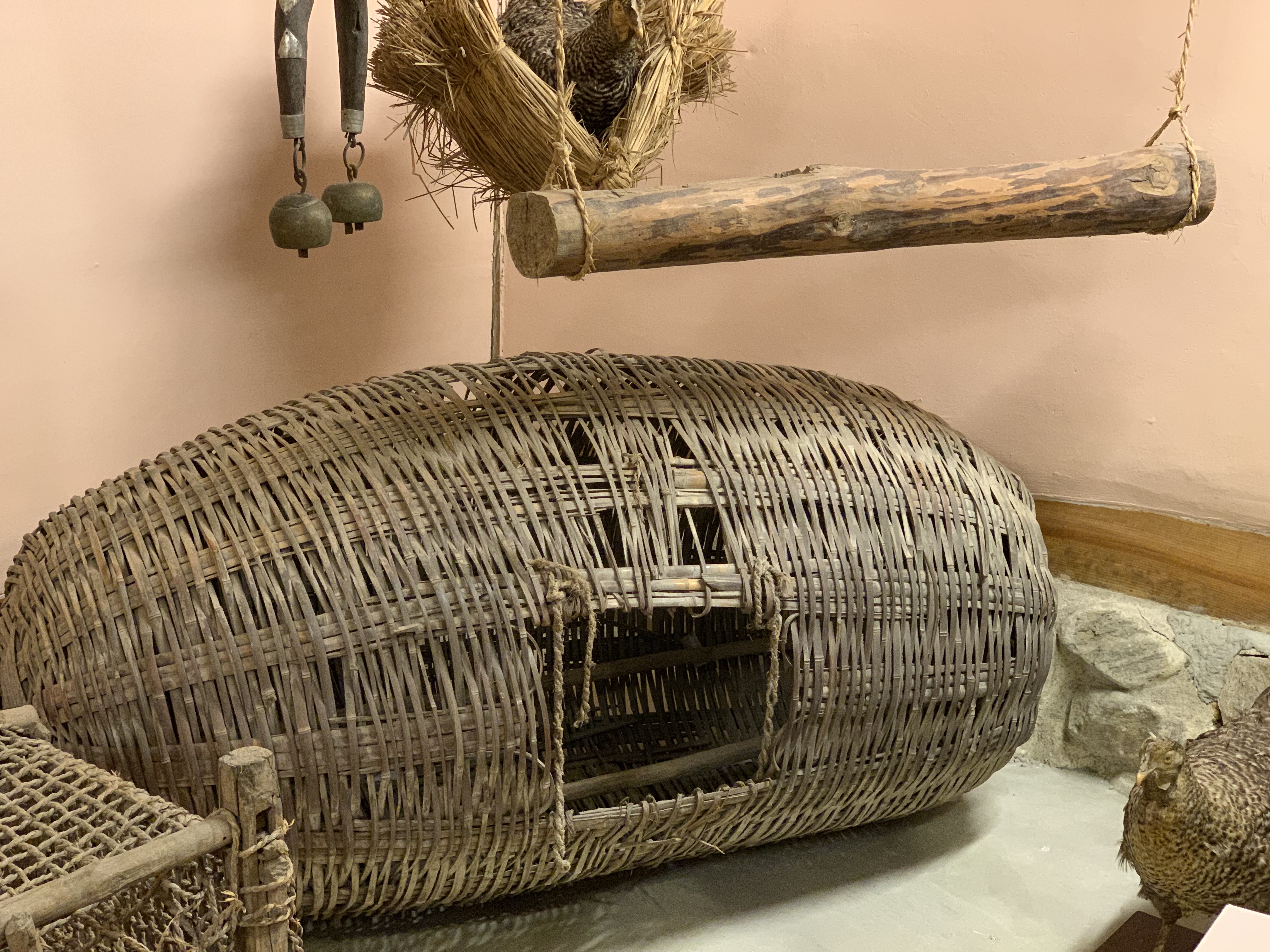 병아리들을 이동할 때 사용했던 ‘어리’에요. 이 어리를 지게에 지거나 나귀 등에 매달아 이동했어요. 네모난 입구를 닫으면 병아리들이 나올 수 없었겠죠? 병아리들은 어디로 가는중 이었을 까요?🐤
