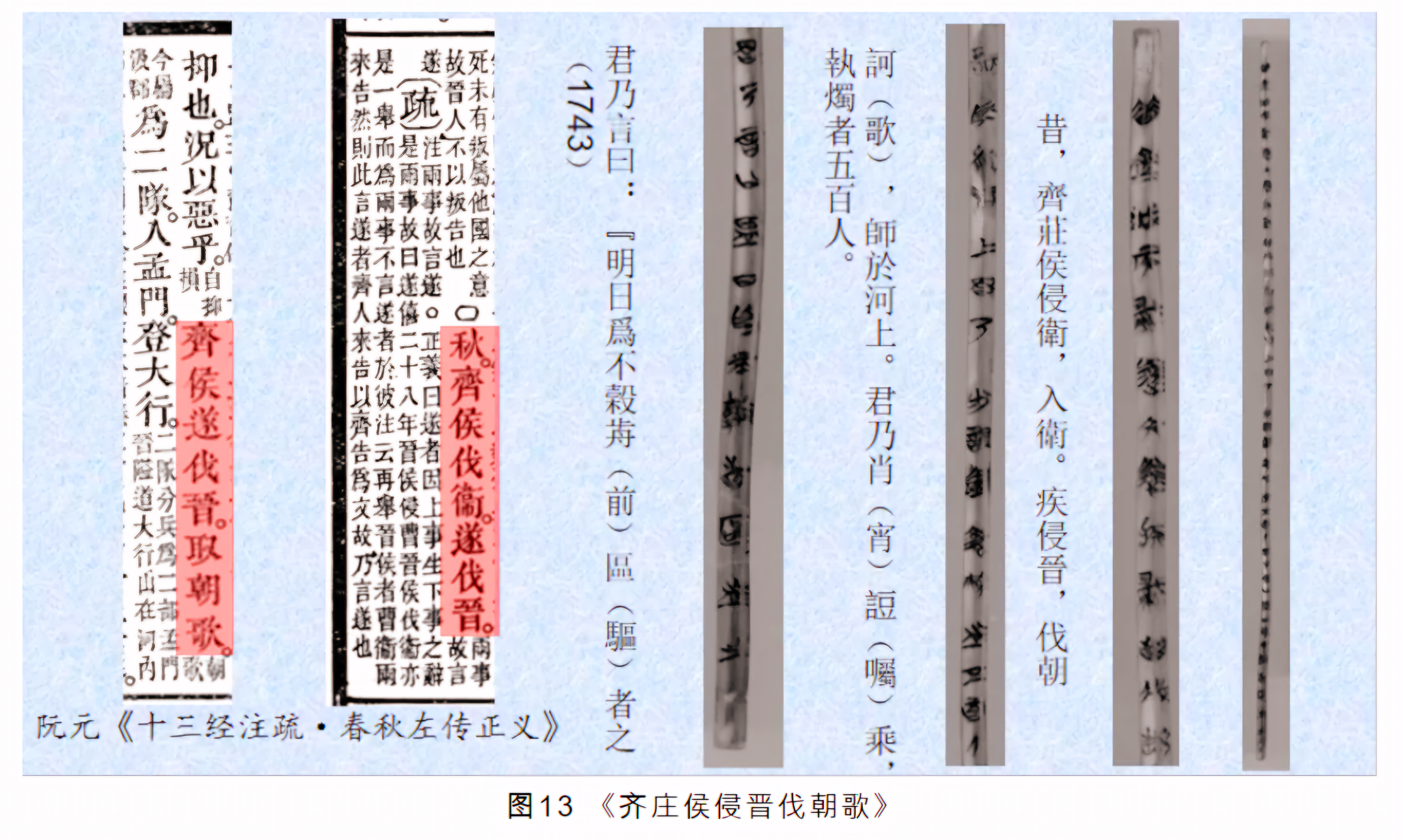 이 전역战役은 기원전 550년에 있었으니, 그에 관한 기술은 《좌전左传·양공襄公二十三年》과 《사기史记·제태공세가齐太公世家》와 청화간清华简 《계년系年》 等의 문헌에 이미 보인다.
