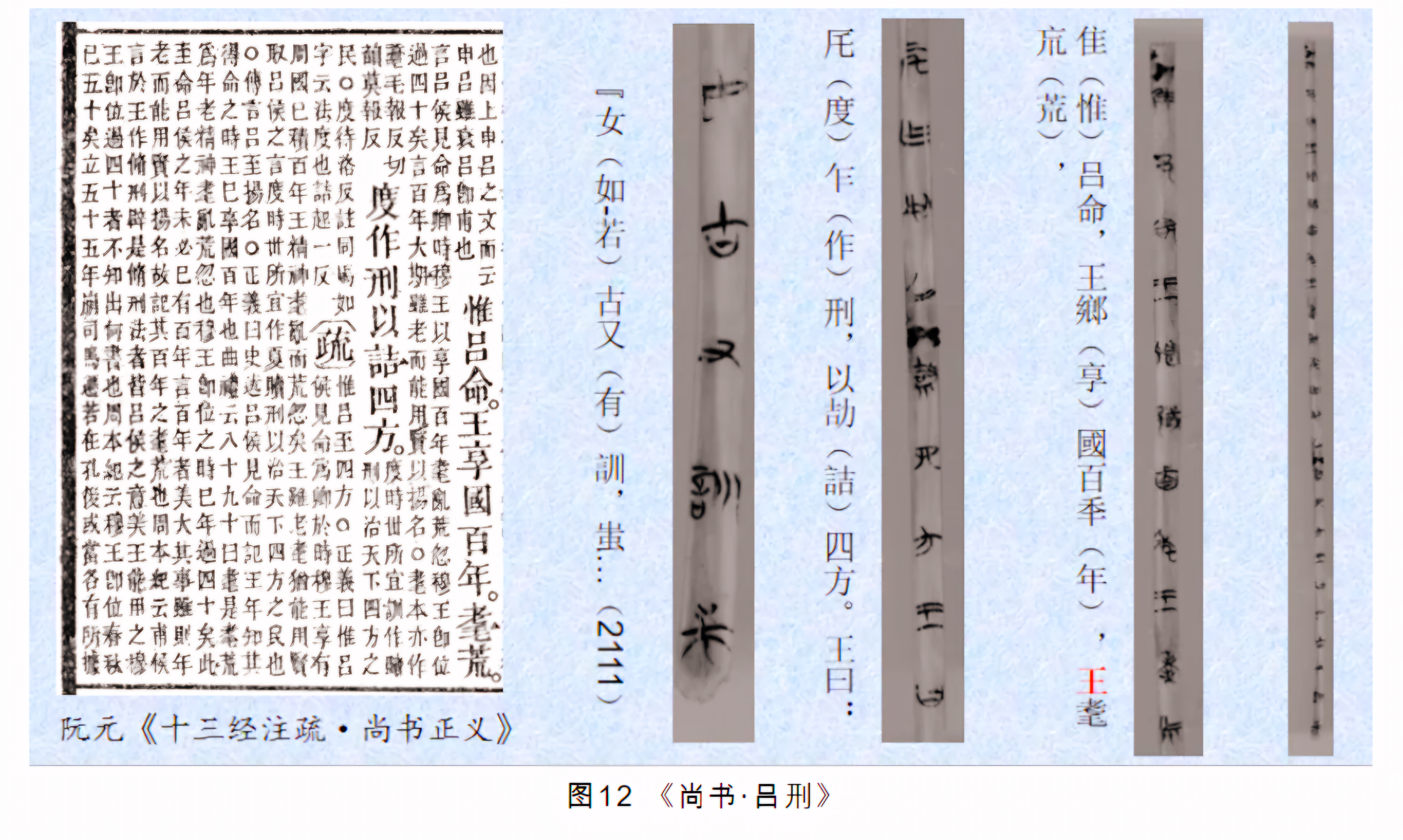 분량은 약 35지支. 내용은 전세본 《금문상서今文尚书》 중 《여형吕刑》과 기본이 일치하며 기술 내용은 서주西周 목왕穆王의 형제개혁刑制改革 명편名篇이다(图12).