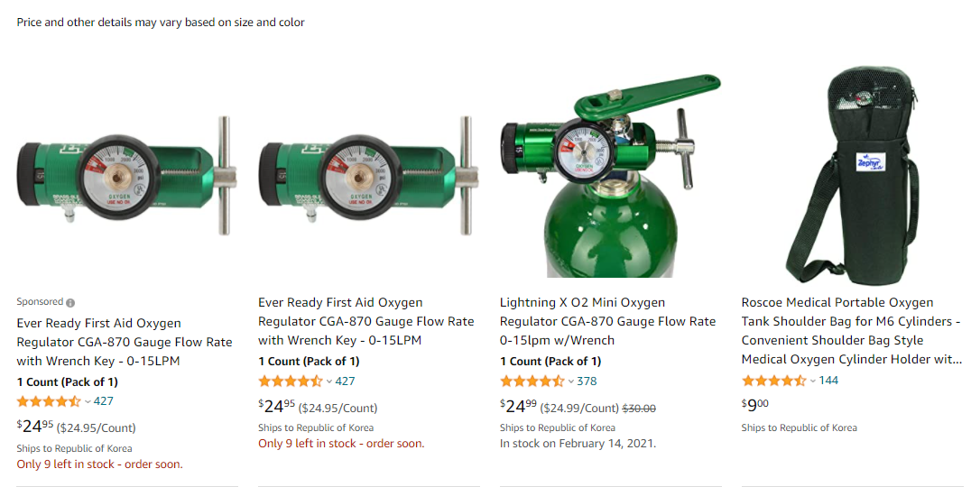 시험삼아 oxygen tank 라는 키워드로 구글 검색을 두들기니, 내가 이쪽에는 워낙 문외한이라 그렇지, 가정상비약처럼 이런 설비도 필요할 수도 있겠다 하는 짐작도 하게 한다. 아마존을 들어가서 검색했더니 이런 것도 팔기는 하는 모양이다. 아래와 같은 상품을 안내하고