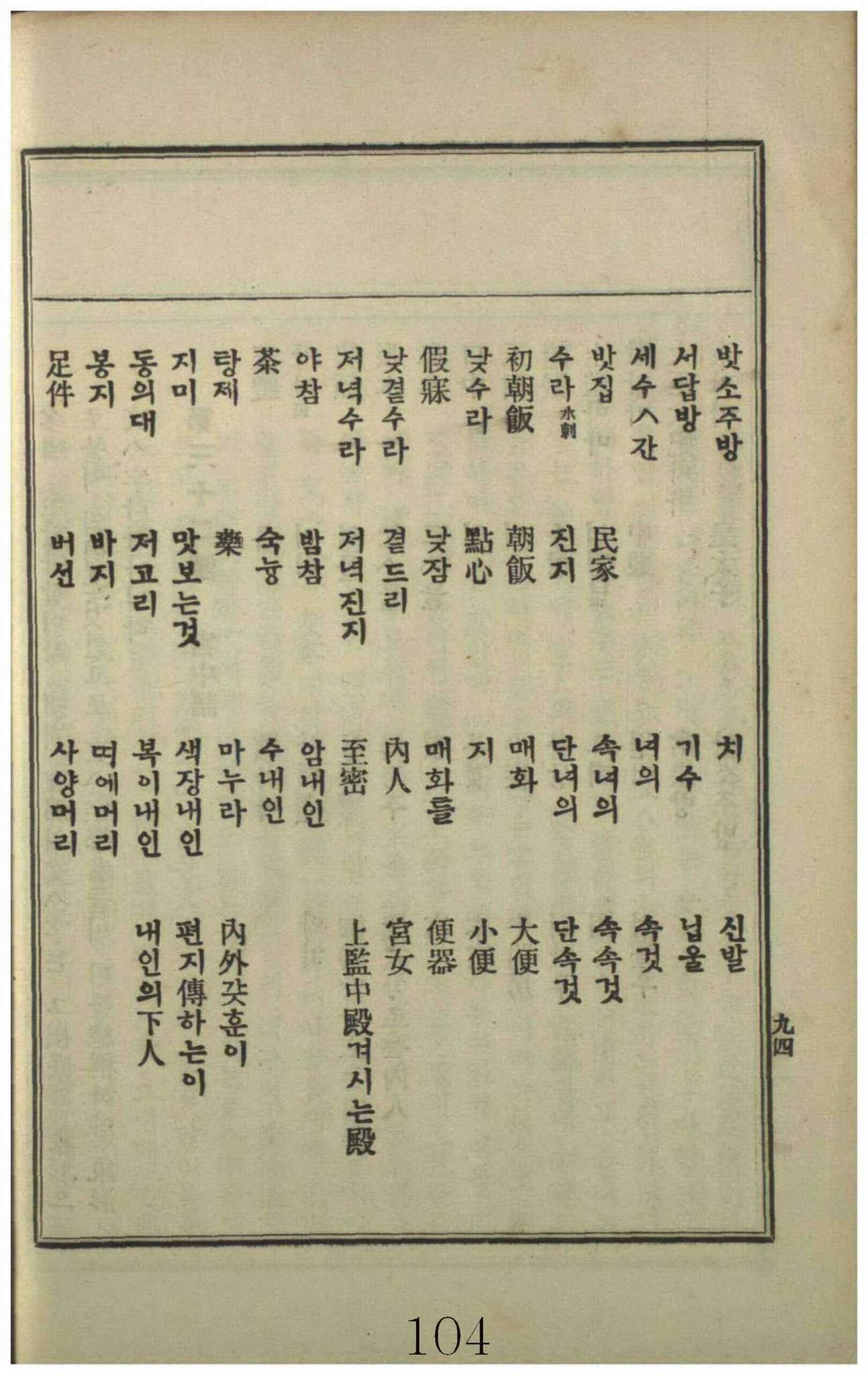 그 가운데 궁중어가 다음과 같이 기록되어 있다.