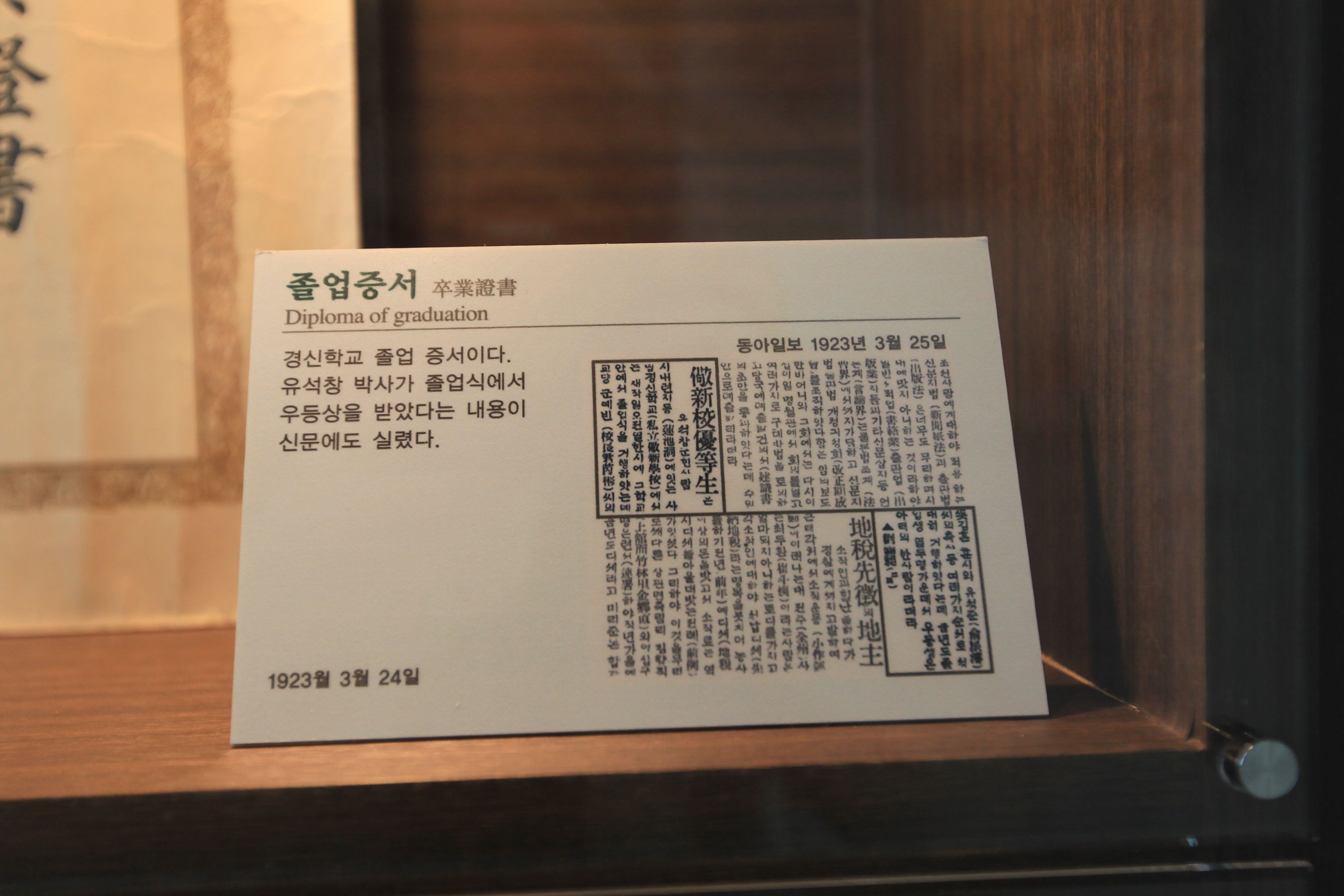 이건 유석창 경신학교 졸업증서다.