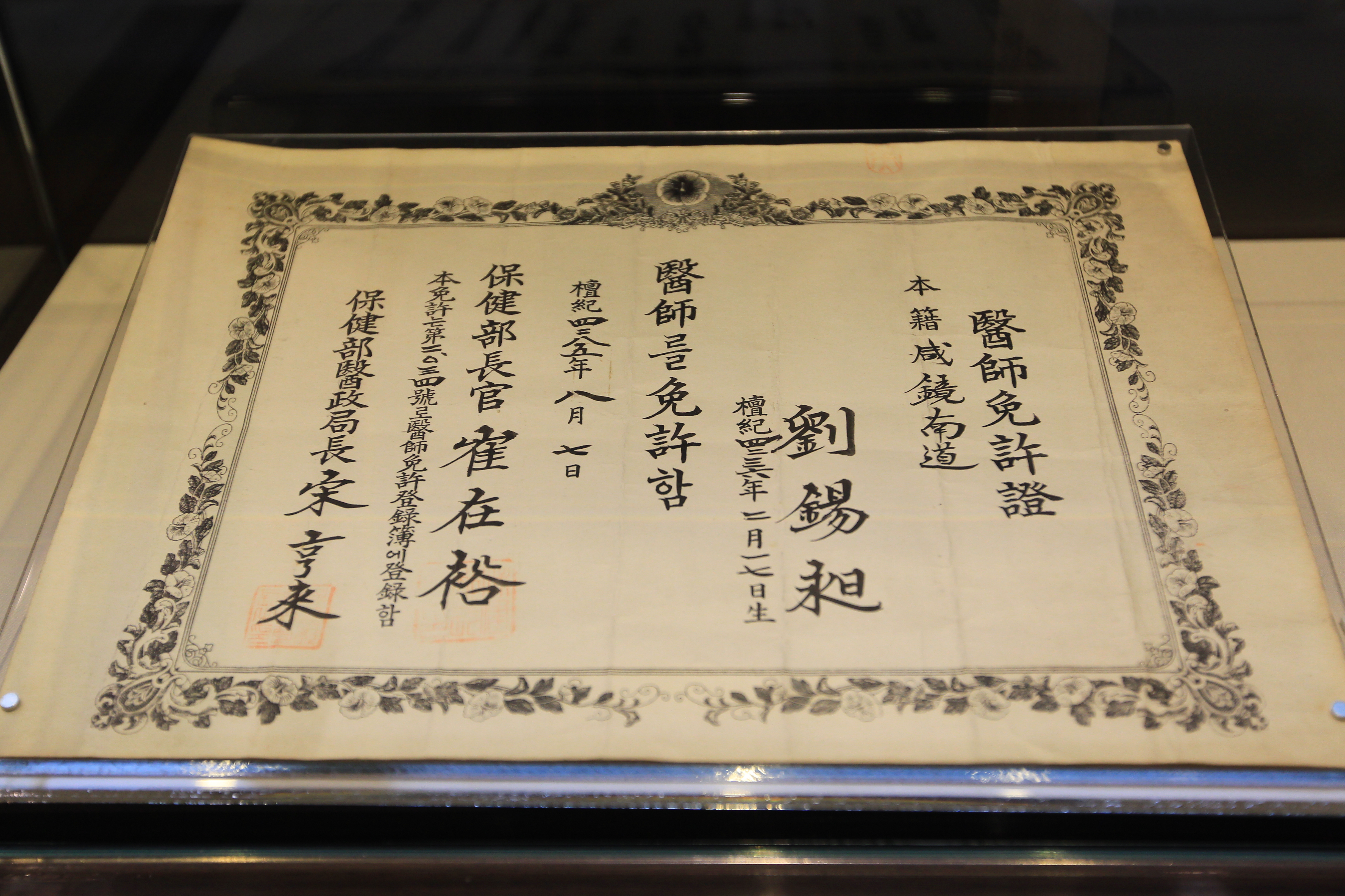 당시 의사면허증은 보건부 의정국이 주관한 듯 그 국장 송형래宋亨來 라는 이름이 보인다.