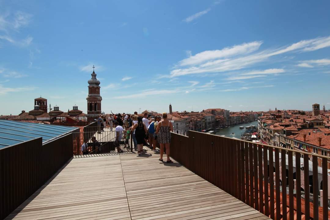 베네치아 명물로 통하는 레알토다리 Ponte di Rialto 인근에 T Fondaco dei Tedeschi by DFS 라는 이상한 이름의 면세점이 있는데, 그쪽 지붕을 개방하더라. 이쪽 옥상은 무료였다. 다리 건너 두리번 하면서 공중에서 한번 내려다 봤음 싶다 했을 적에 저 건물 옥상에 사람들이 웅성하는 모습을 보고는 올랐더랬다.