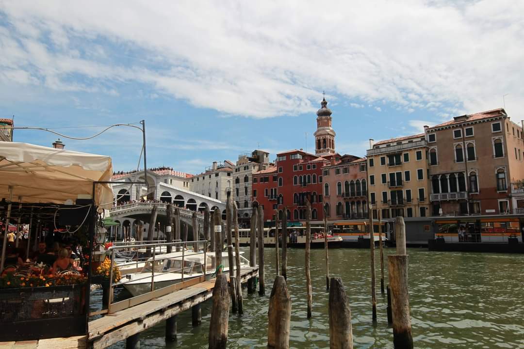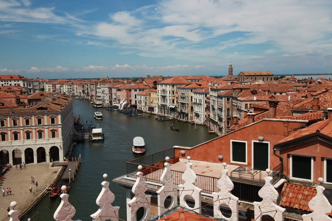 베네치아 명물로 통하는 레알토다리 Ponte di Rialto 인근에 T Fondaco dei Tedeschi by DFS 라는 이상한 이름의 면세점이 있는데, 그쪽 지붕을 개방하더라. 이쪽 옥상은 무료였다. 다리 건너 두리번 하면서 공중에서 한번 내려다 봤음 싶다 했을 적에 저 건물 옥상에 사람들이 웅성하는 모습을 보고는 올랐더랬다.