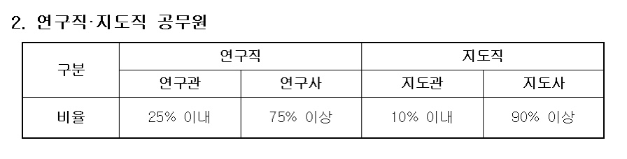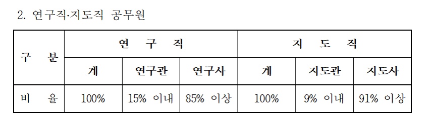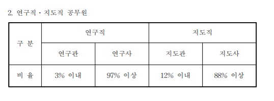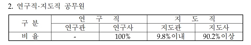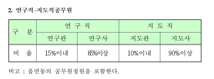 문경시의 경우 연구관 15%, 연구사 85% 이상으로 정해져 있다.