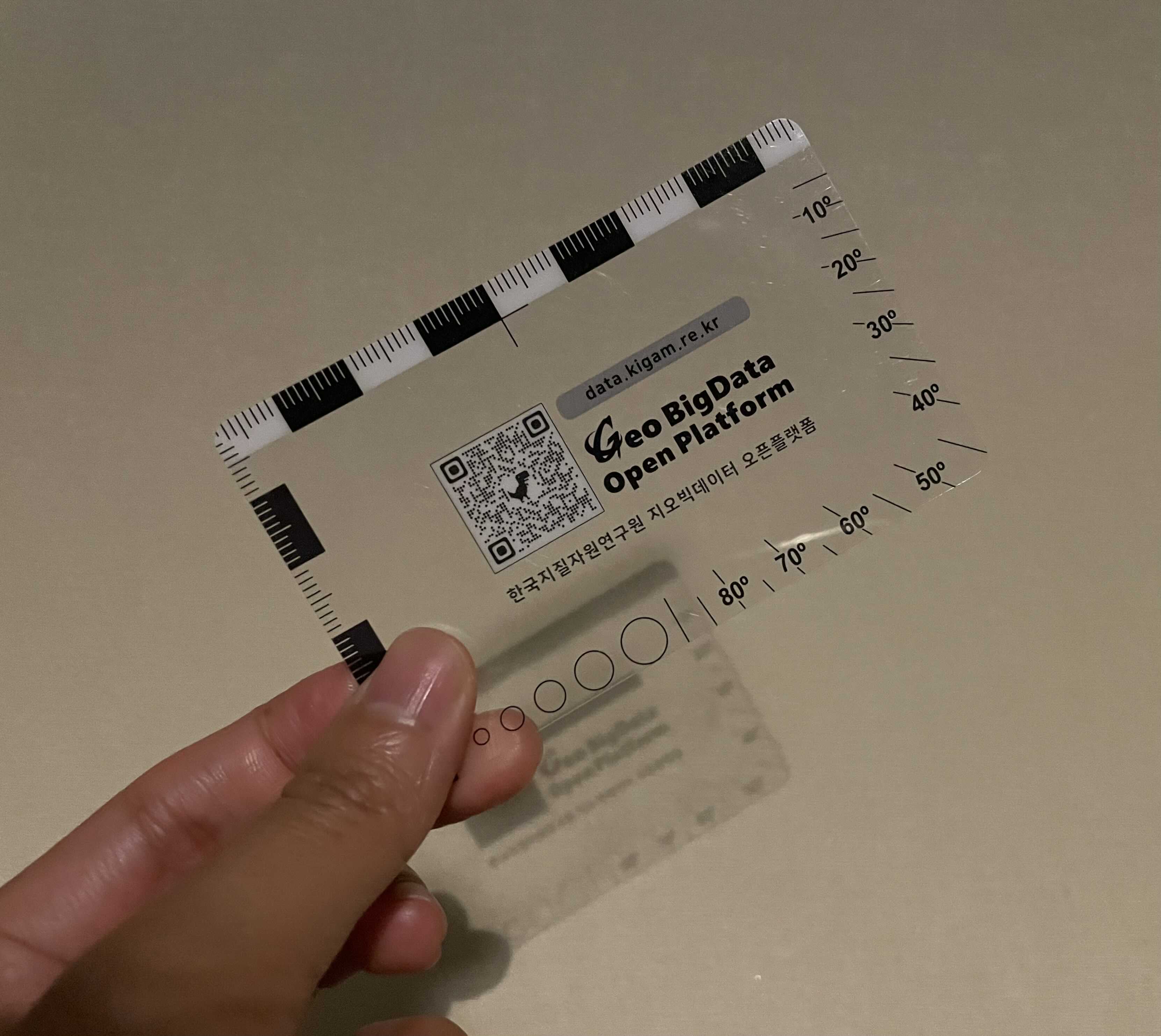 지질박물관 전시실 입구에서 받을 수 있는 스케일바(scale bar)입니다. 전시를 보면서 전시물 크기를 측정할 수 있다니, 재밌는 생각이었습니다!