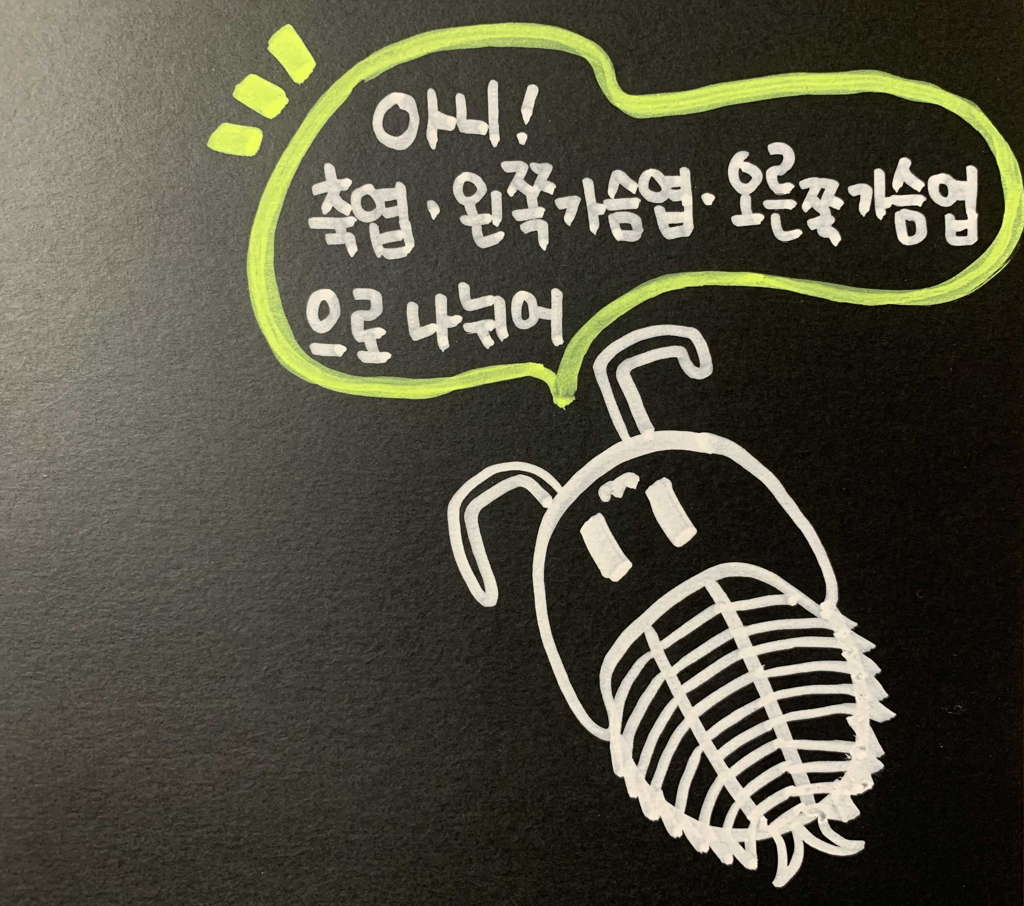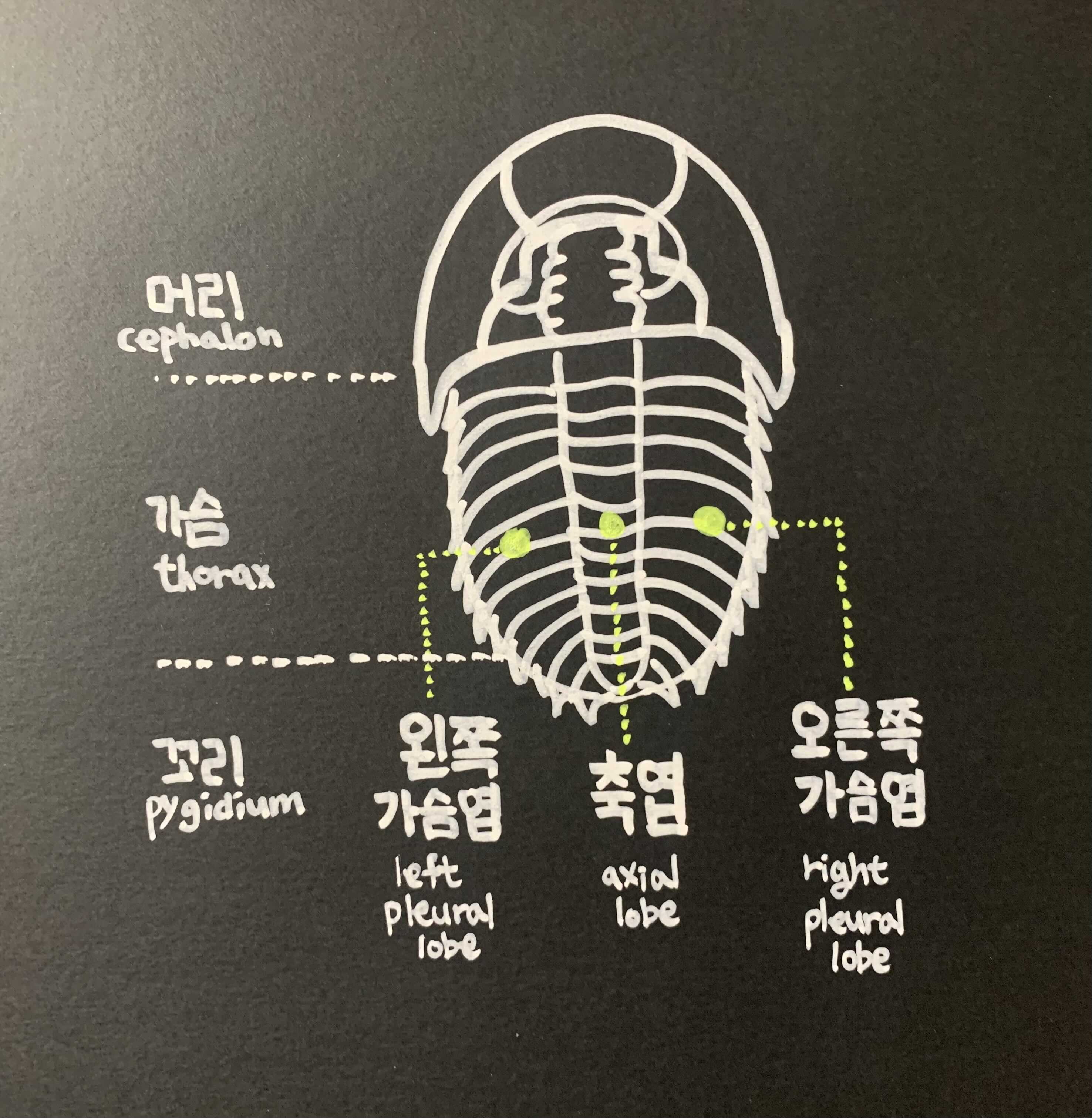 특히 “삼엽충은 머리•몸통•꼬리로 나뉘어 삼엽충이다.” (또 저만 헷갈렸던 거죠?! ㅎㅎ)