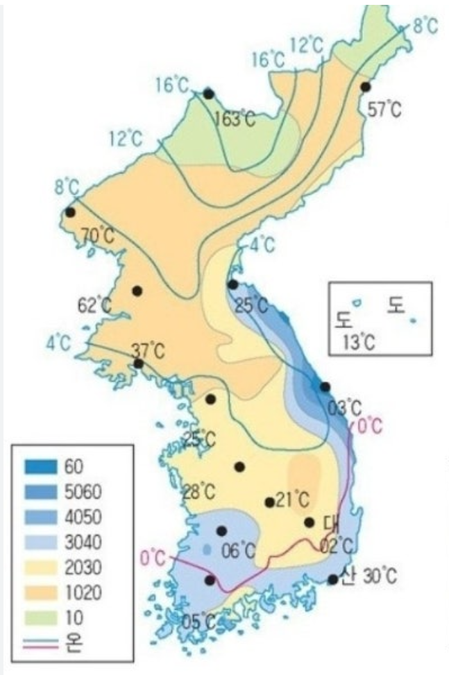 한반도의 1월, 평균기온 0도가 되는 지역은 어디일까?