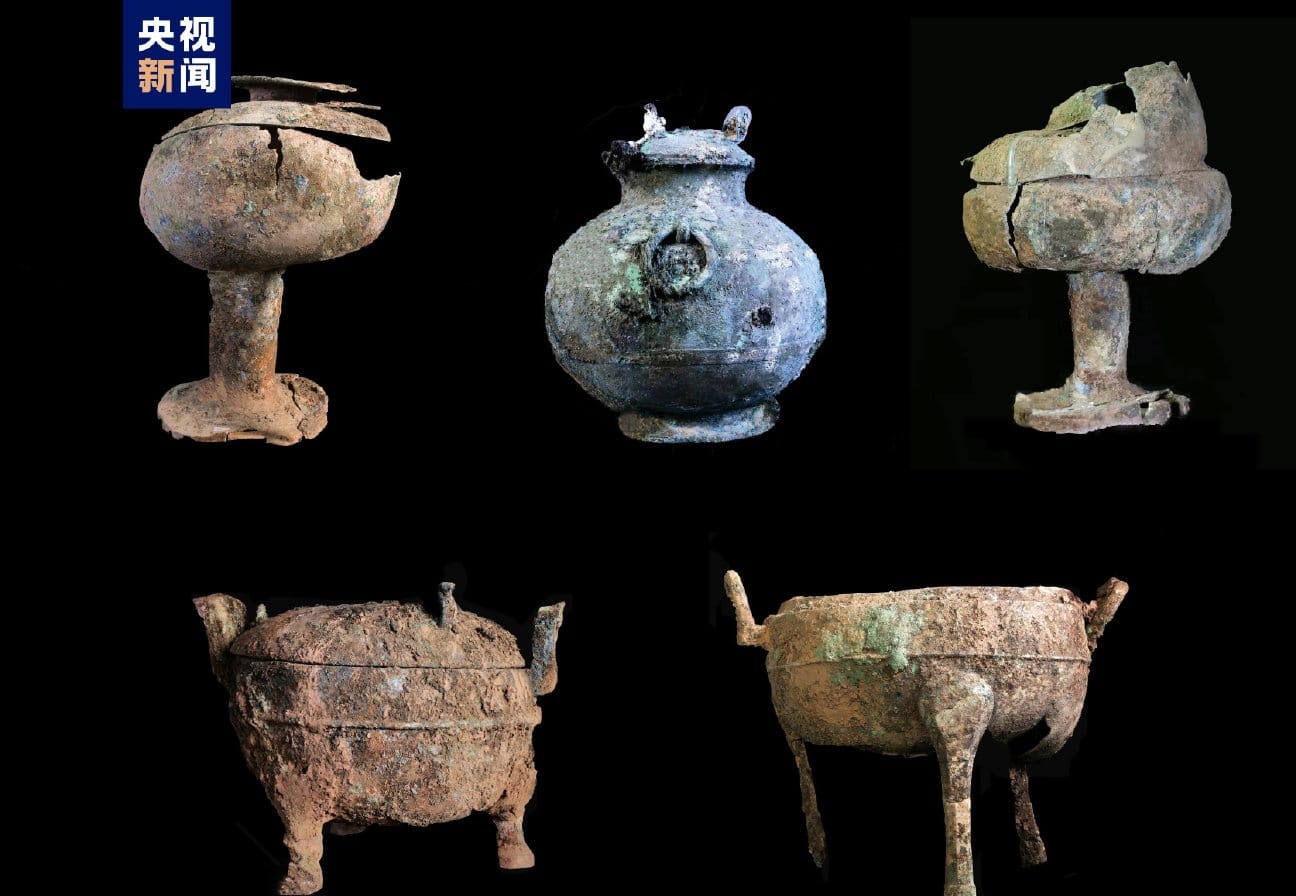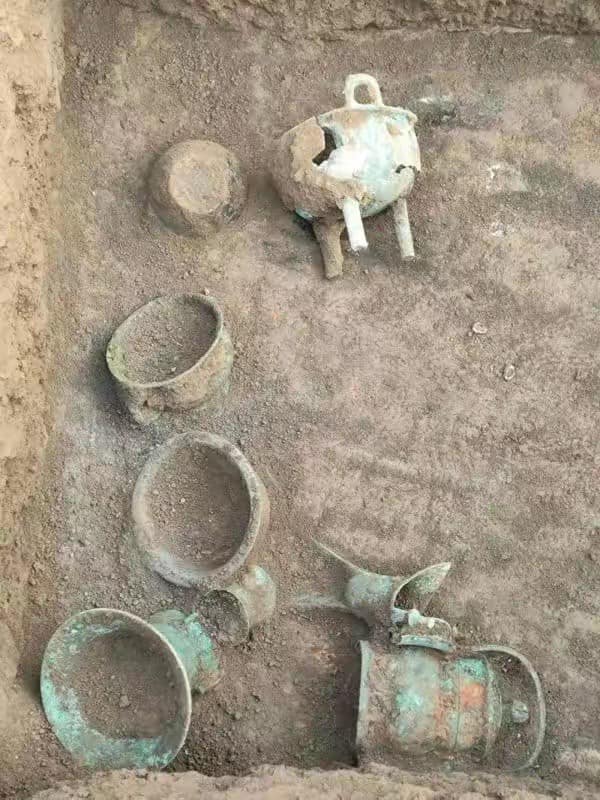 청동기에는 정鼎, 두豆, 방钫, 호壶, 반盘, 증甑, 등잔, 그리고 평종编钟과 금진琴轸 등이 있다.