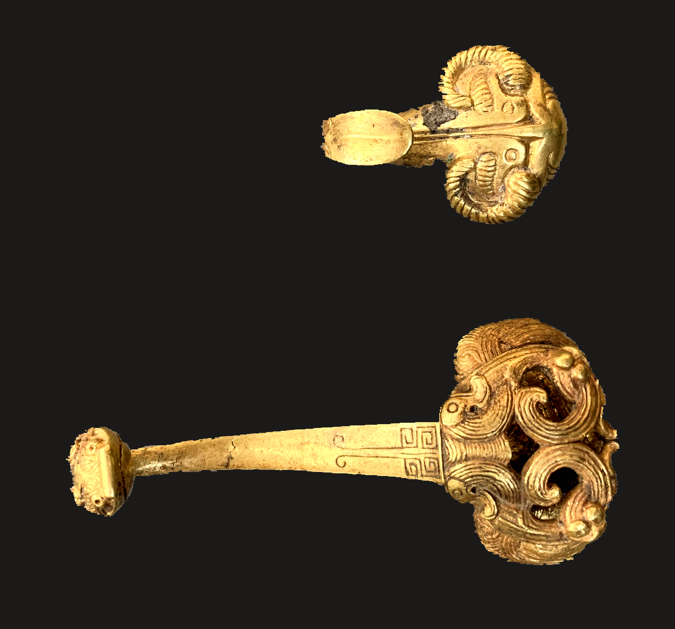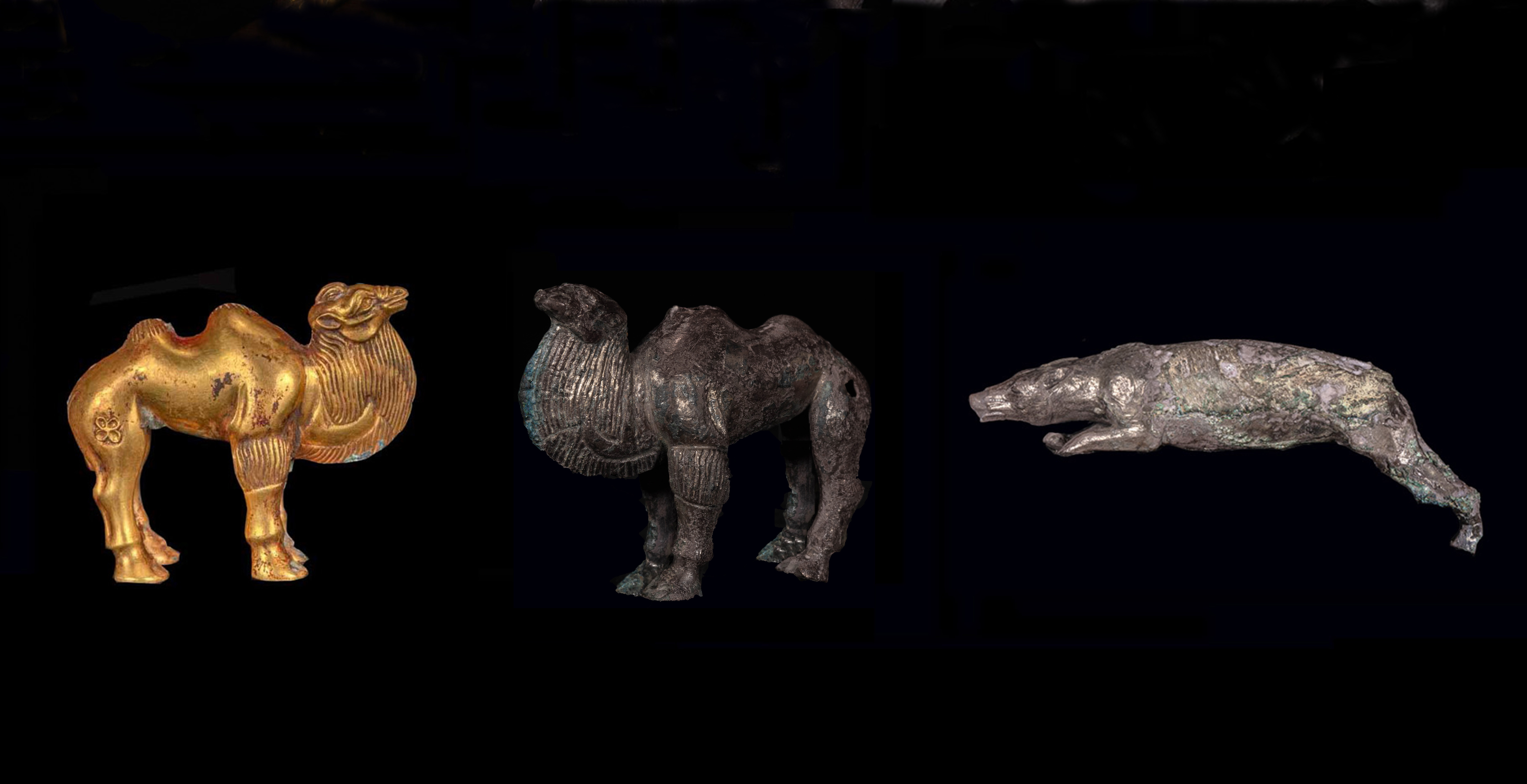 금식패金饰牌、금대구金带钩는중원지구中原地区와 주변 문화가 교류융합했음을 실증한다. 금은 낙타骆驼가 대표하는 금속제 용俑은 가장 큰 특징이라 이는 진대秦代 예술 걸작품일 뿐만 아니라 동서문화교류의 실증이다.