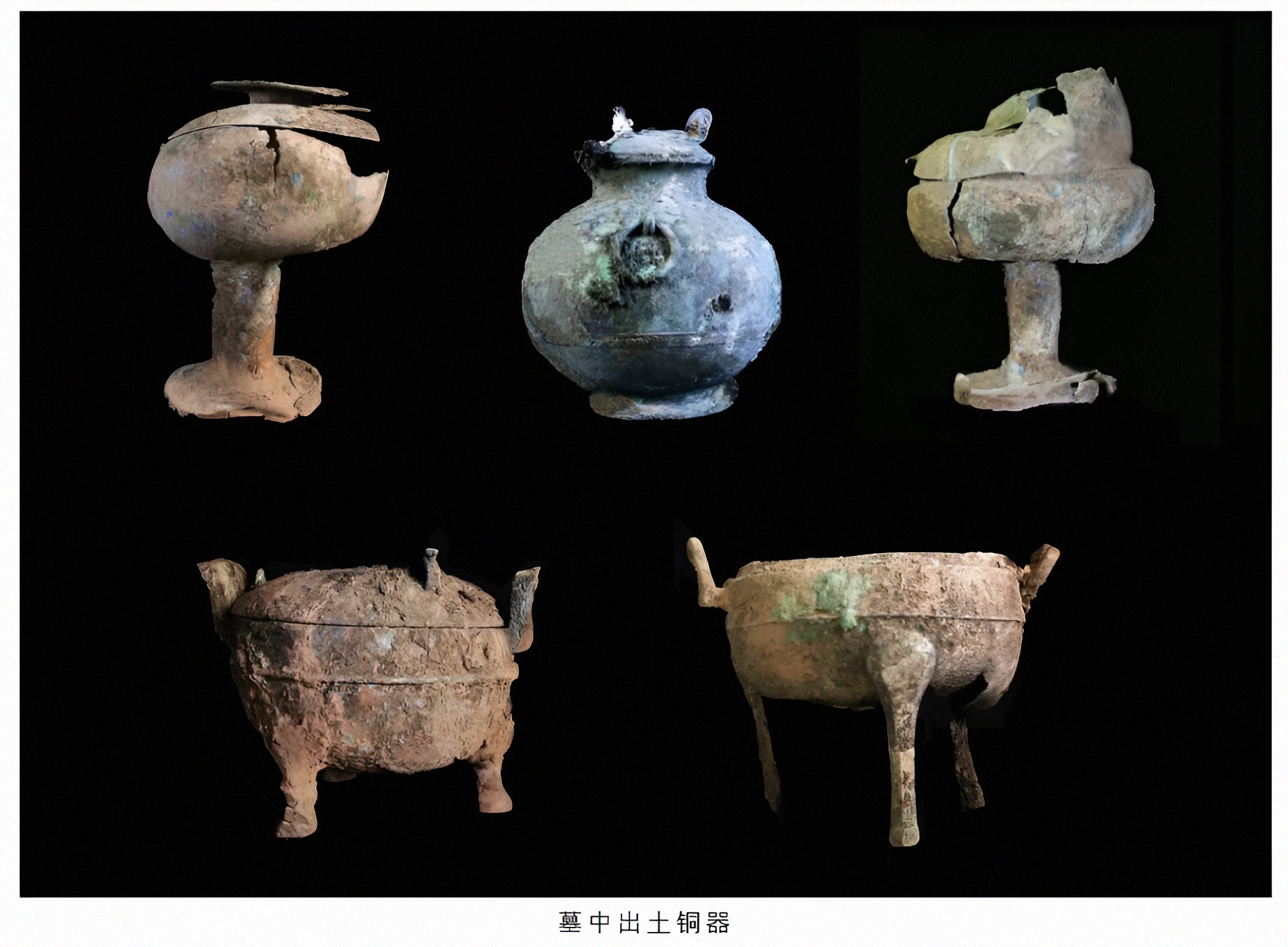 묘에서는 대량의 도기陶器、동기铜器、옥기玉器、철기铁器 및 금은순지金银质地의 소형 명기明器가 나왔다.