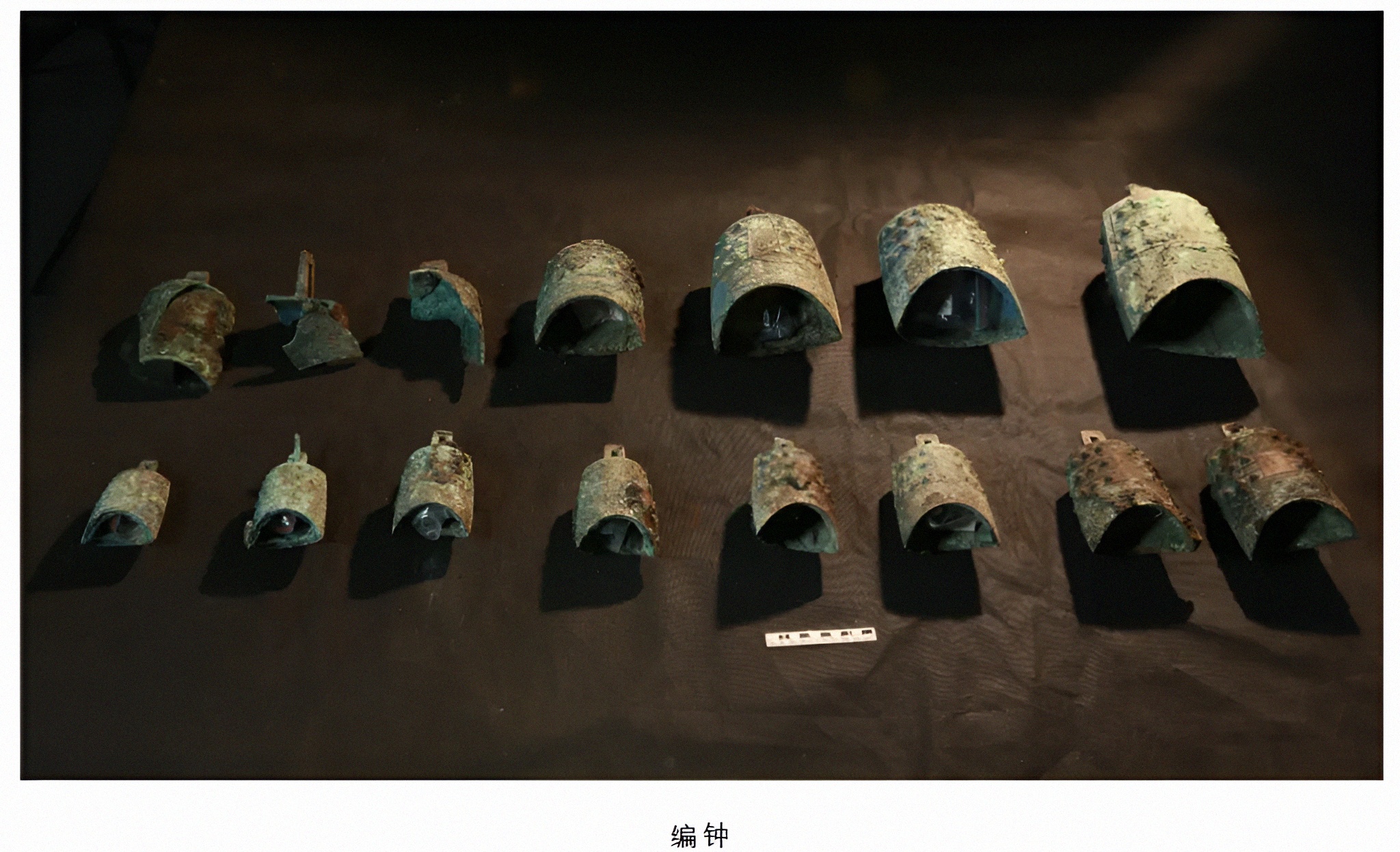 청동기青铜器로는 정鼎、두豆、방钫、호壶、반盘、증甑、등灯 및 편종编钟、금진琴轸 등이 있다.