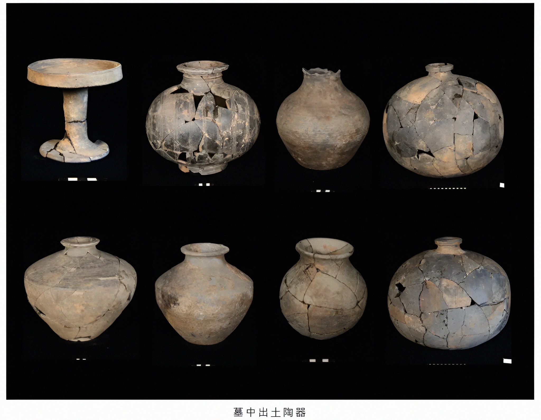 묘에서는 대량의 도기陶器、동기铜器、옥기玉器、철기铁器 및 금은순지金银质地의 소형 명기明器가 나왔다.
