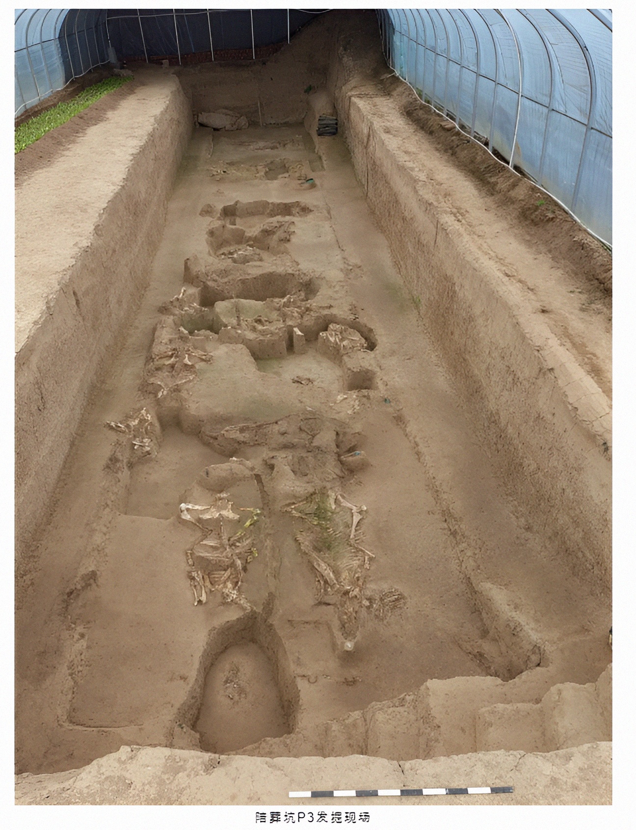 P1、P2는 각각 사거가독주목거四马驾独辀木车 1辆을 매장했고, P1에서는 그 외에도 完整한 犬骨 1具랑 少量 青铜 车马器가 수습됐다.