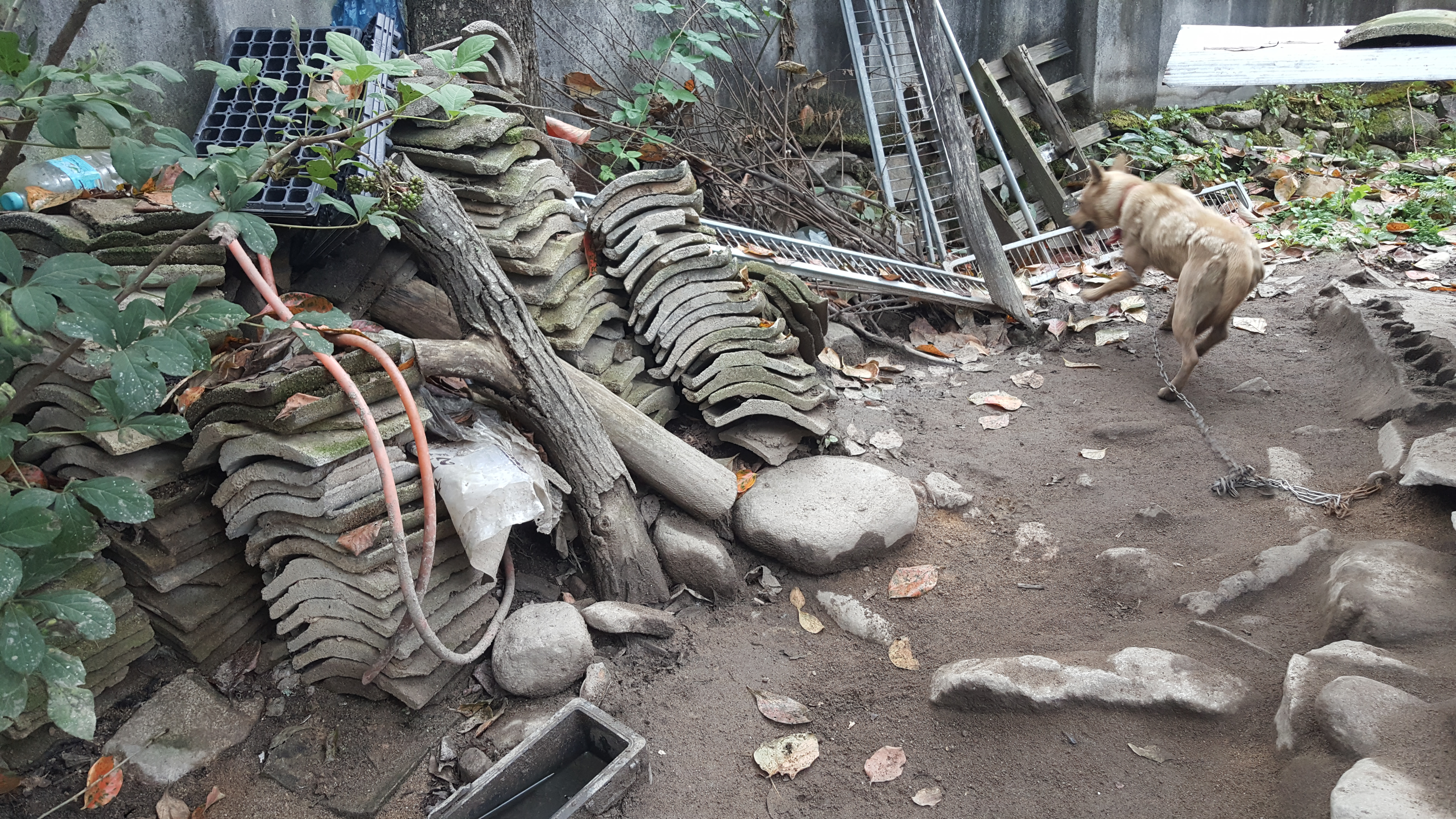 첫째, 저런 개가 많다. 저런 개 있으면 짜증이 나는데 실은 김천집 개시끼가 저에 가까워 이 놈은 대략 10살 정도 먹었을라나? 나를 본 게 한두번도 아니어니와, 지한테 먹을 걸 준 것도 대체 몇번이나 되는지, 그래도 매양 내가 내려갈 때마다 저시키 도둑놈이라는 자세로 끊임없이 짖어댄다.