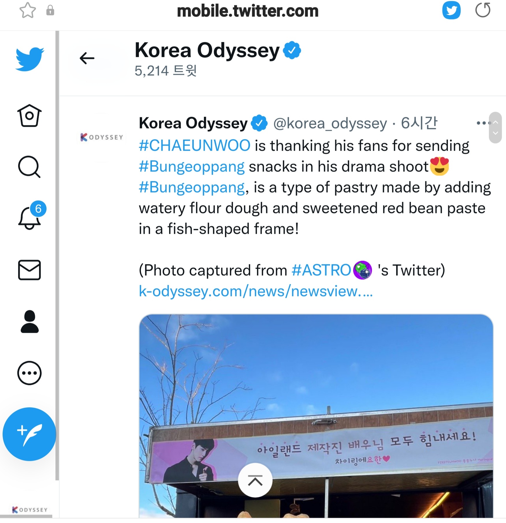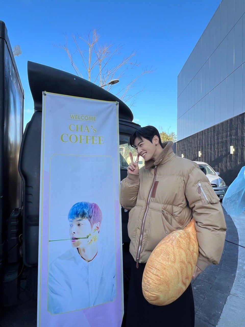 이야기인즉슨 아일랜드라는 새 드라마에 아스트로 대표간판 차은우가 나오는데 아스트로 팬클럽이 한 5일전쯤에 촬영장에 스태프랑 출연진 먹으라고 붕어빵 간식차를 보냈고, 그걸 차은우가 잘먹었다는 인증샷을 그네들 트위터 계정에 올린 것이란다.