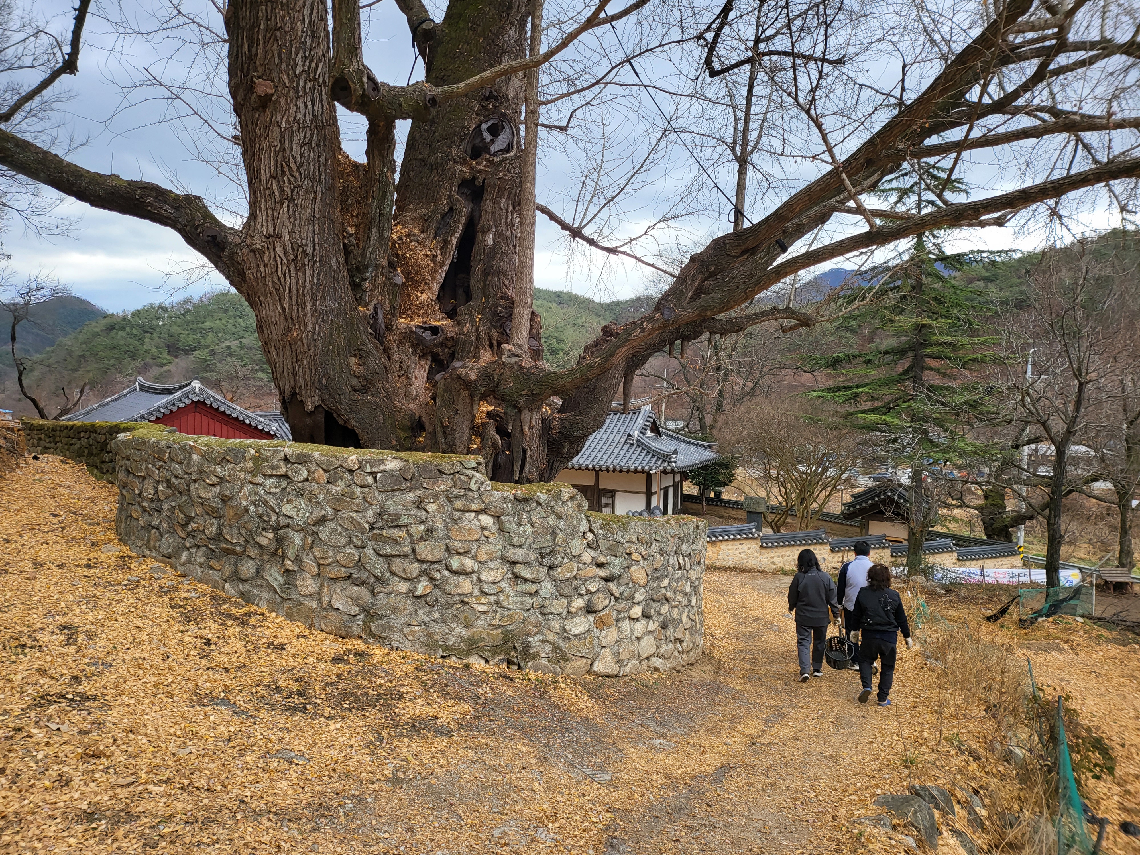 2022년 양력 12월 2일은 음력 11월 9일이라 선친 23주기였다. 갓 제대하고 탱자탱자 중인 아들놈 대동하고는 제사 지내려 고향을 찾았으니 그 고향집 직선 백미터도 안 되는 지점이 경상북도 지정문화재인 섬계서원이고 다시 그 경내는 국가지정 문화재 천연기념물인 김천 섬계서원 은행나무가 있으니 이 은행나무 인근에 어머니가 작은 문중 밭뙤기를 소작하며 배추니 하는 채소밭으로 쓴다.