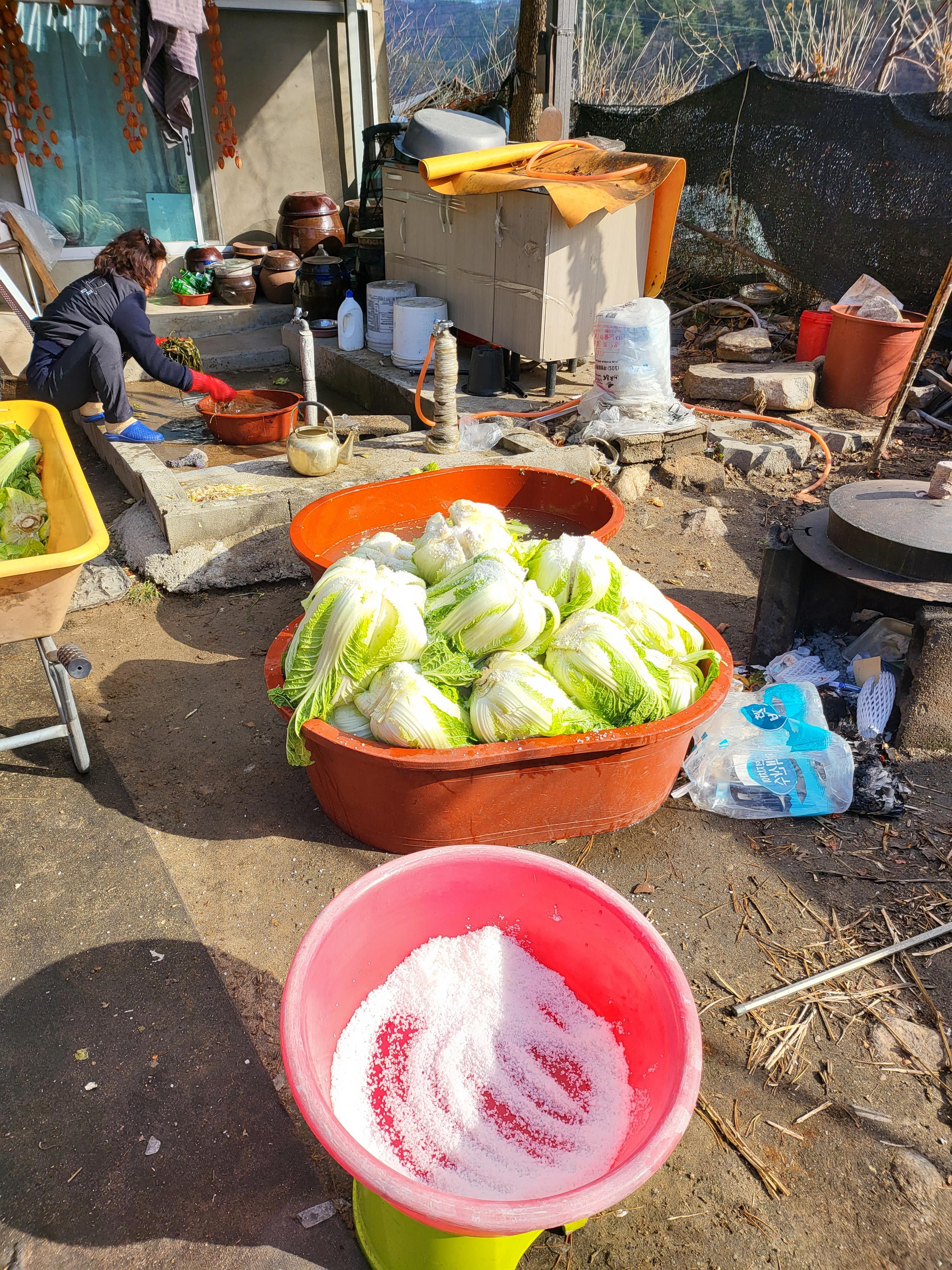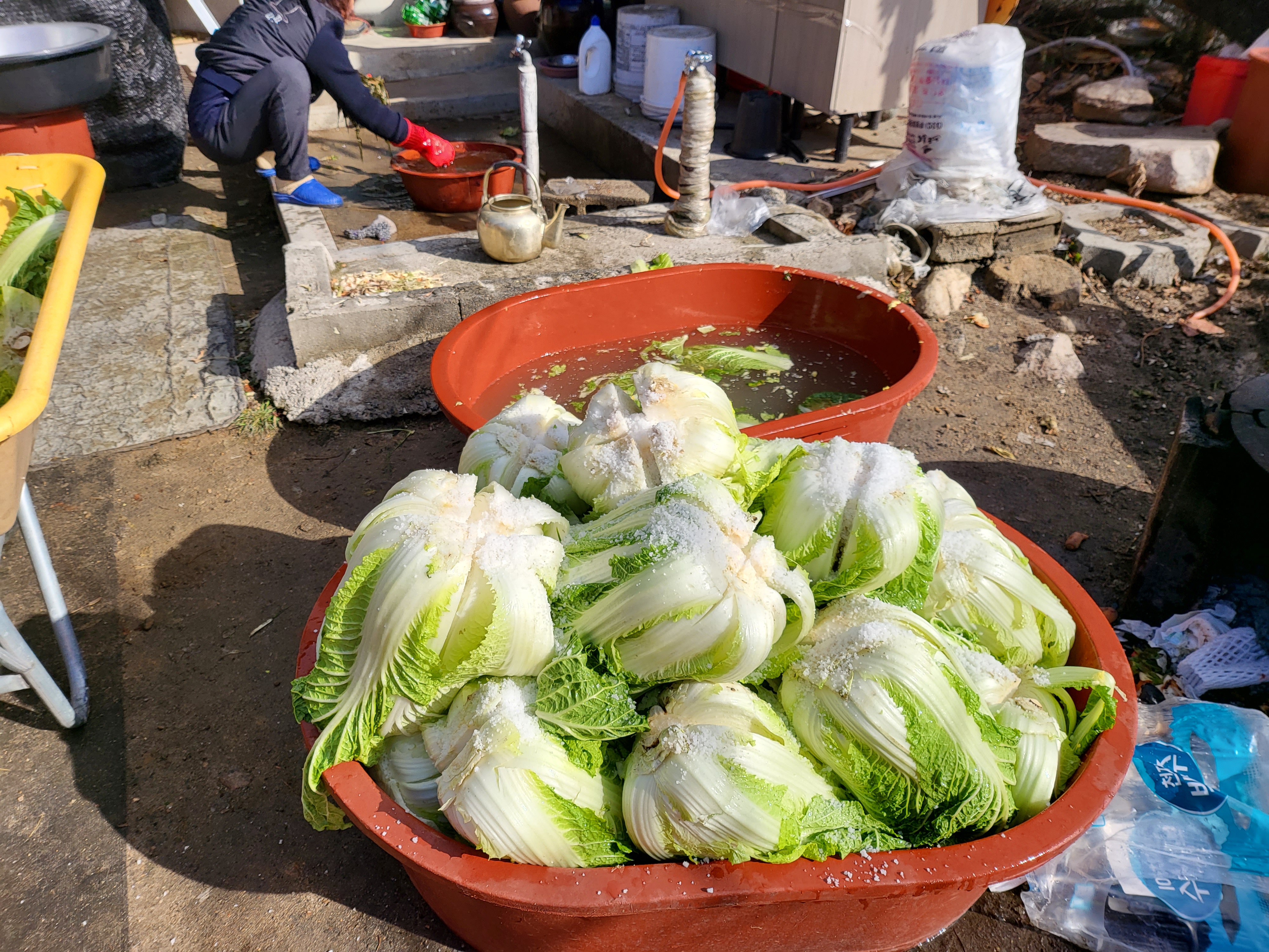 누님들도 내려오고 내친 김에 다시 그 배추 뽑아 김장해서 누님들한테 보낸다 해서 주말에 좀 부산을 떨었다.