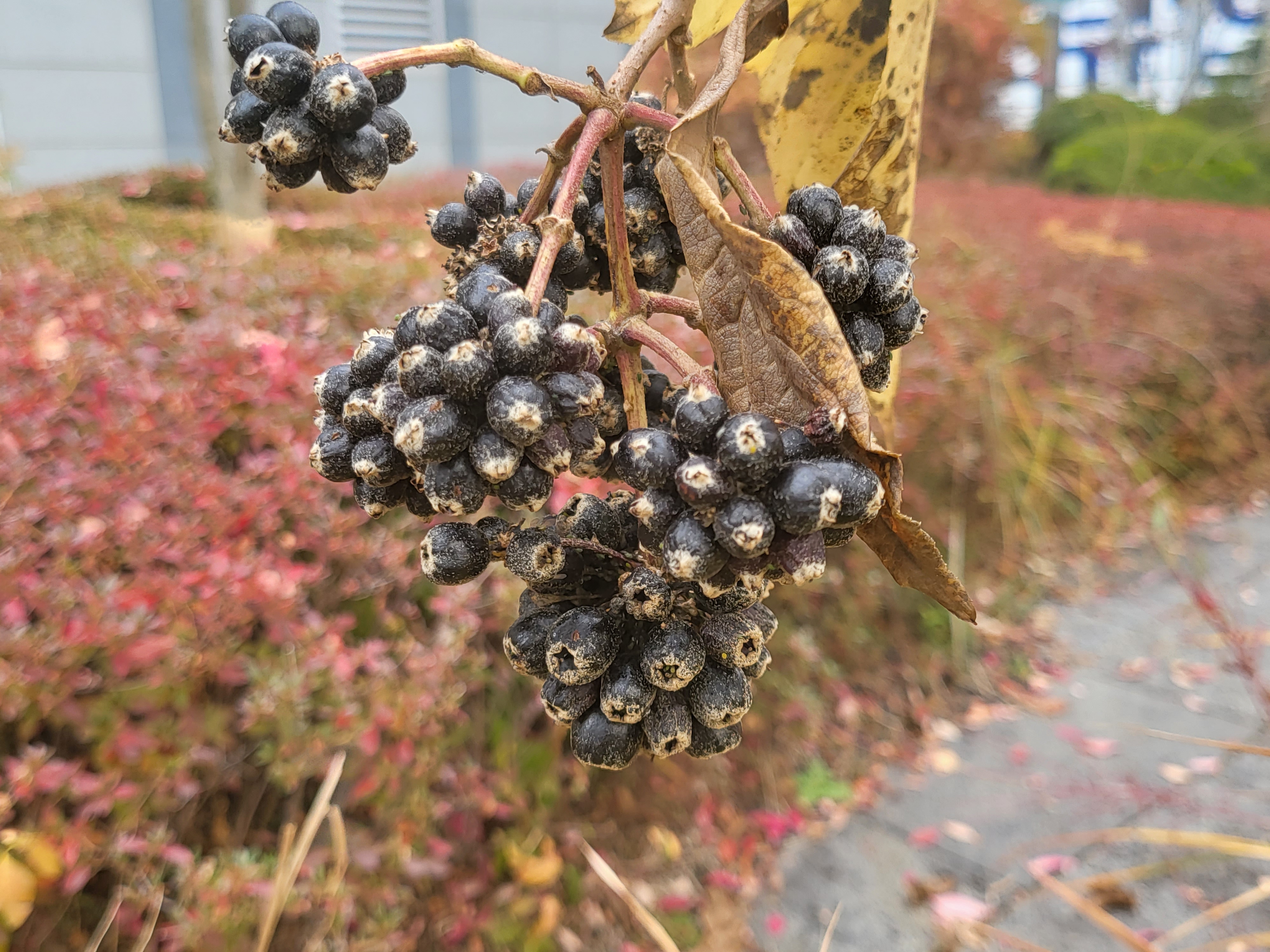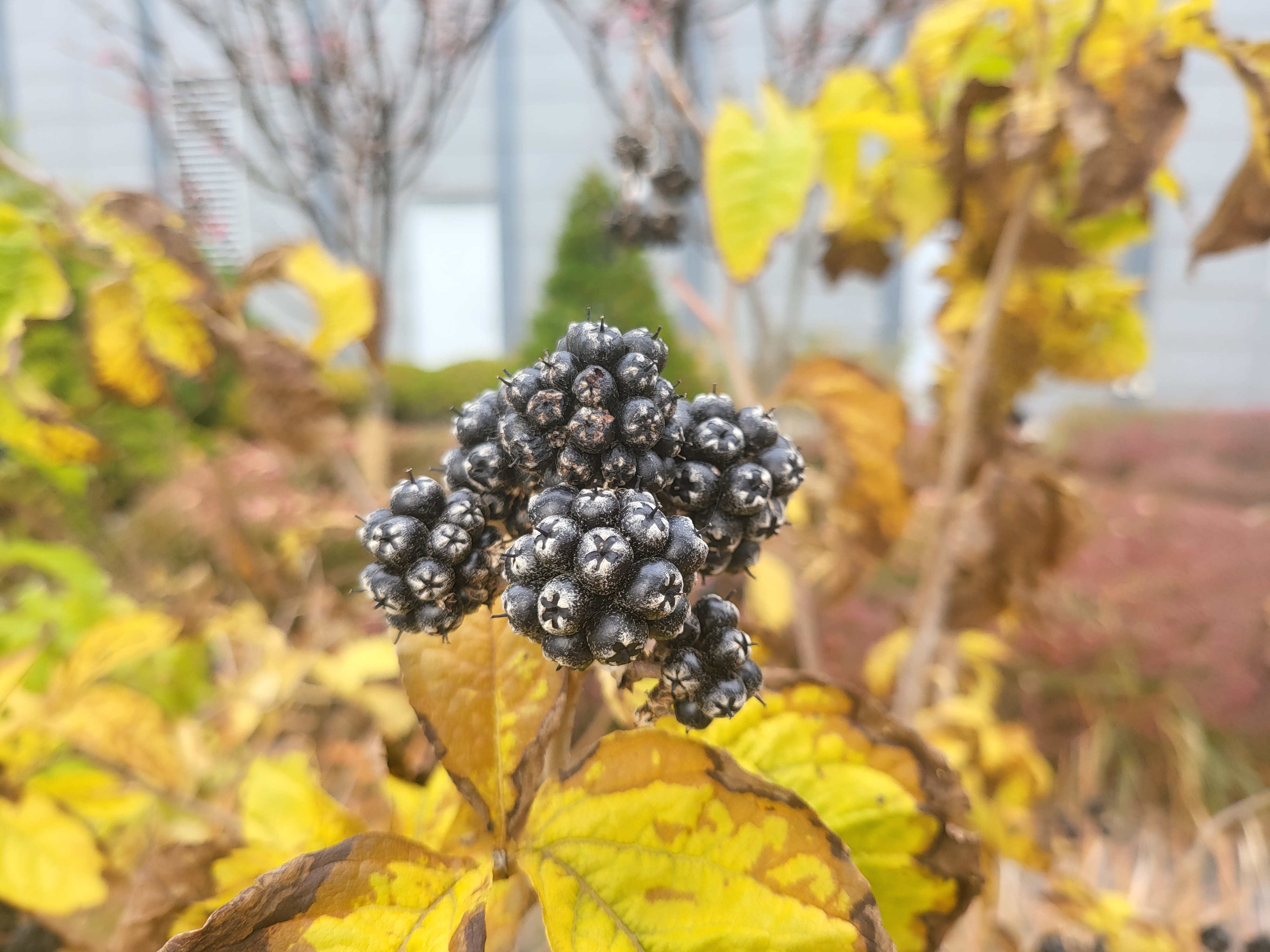 거무틱틱하니 변한 저 열매 언제쯤 고공낙하하나 줄곧 지켜보는데 두어달 줄곧 색깔만 거무틱틱해질 뿐 계속 저 모습이다.
